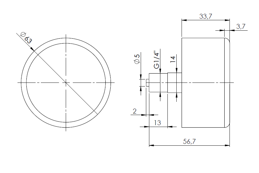 Przeznaczony do pomiaru ciśnień gazów suchych, które nie działają niszcząco na stopy miedzi.