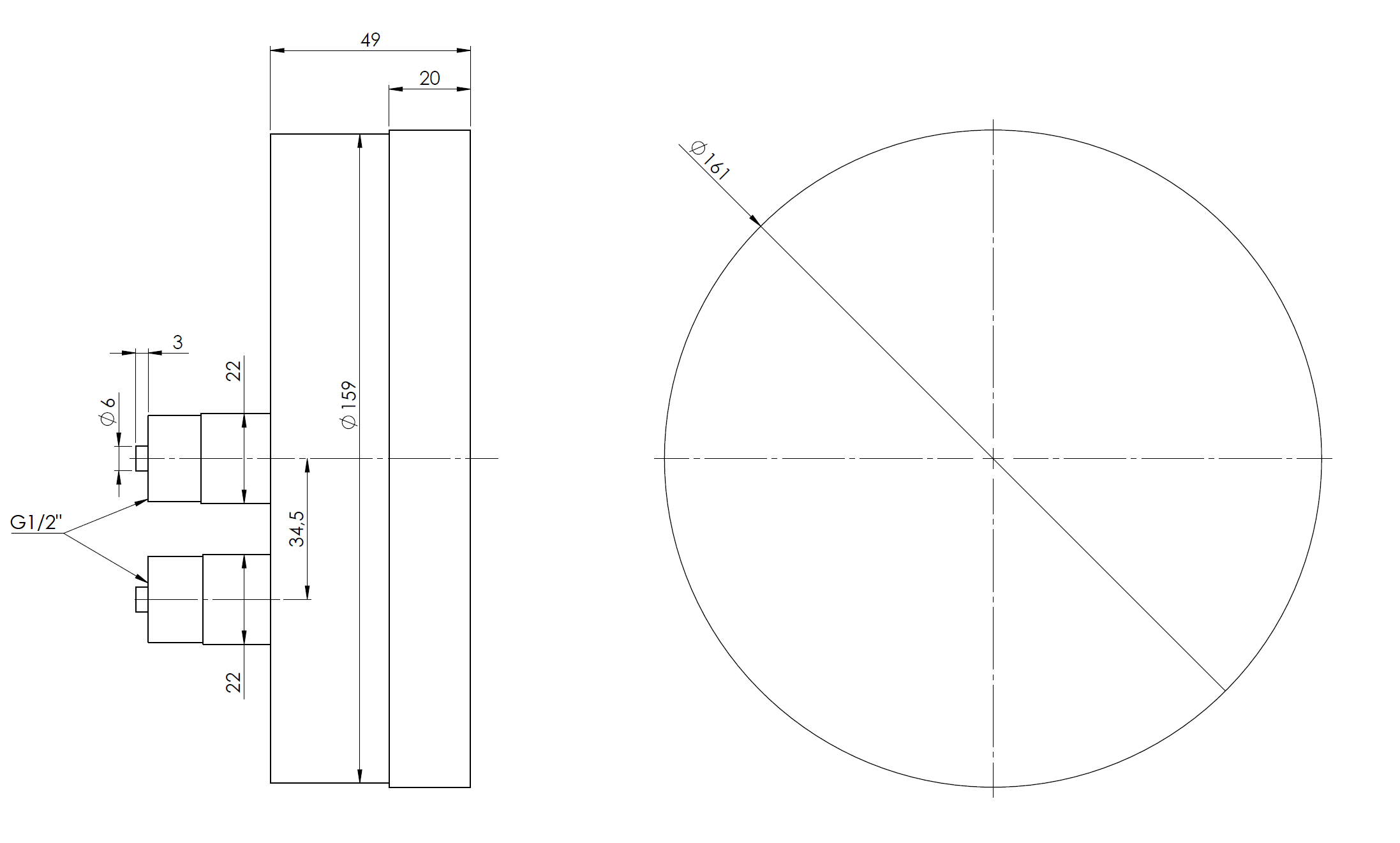 Ciśnieniomierz różnicowy AFRISO KP Dif D411 0/100 mbar mosiądz G1/2B aksjalne fi 160, kl. 1.6%