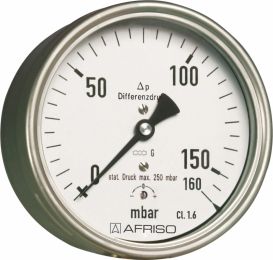 Ciśnieniomierz różnicowy AFRISO KP Dif D411 0/250 mbar mosiądz G1/2B aksjalne fi 160, kl. 1.6%