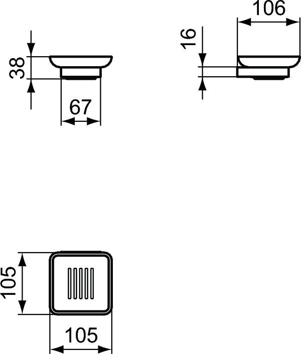Mydelniczka Conca wisząca kwadratowa. Szkło matowe. Zestaw montażowy w komplecie. Dostępne wykończenia: - technologia galwanizacji (AA), - technologia PVD (GN, A2, A5).
