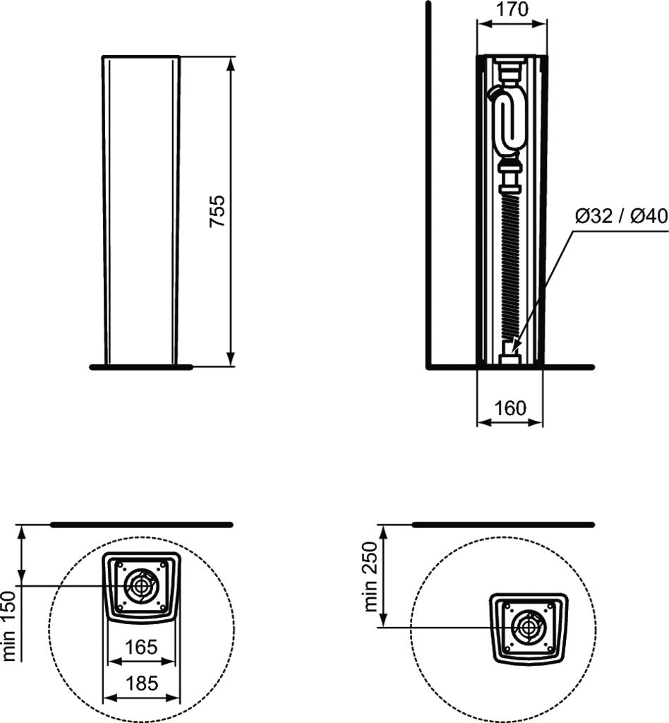 Postument do montażu wolnostojącego prostokątnej nablatowej umywalki 60 cm. Specjalna wewnętrzna konstrukcja metalowa do montażu prostokątnej umywalki nablatowej wraz z rurą i syfonem.
