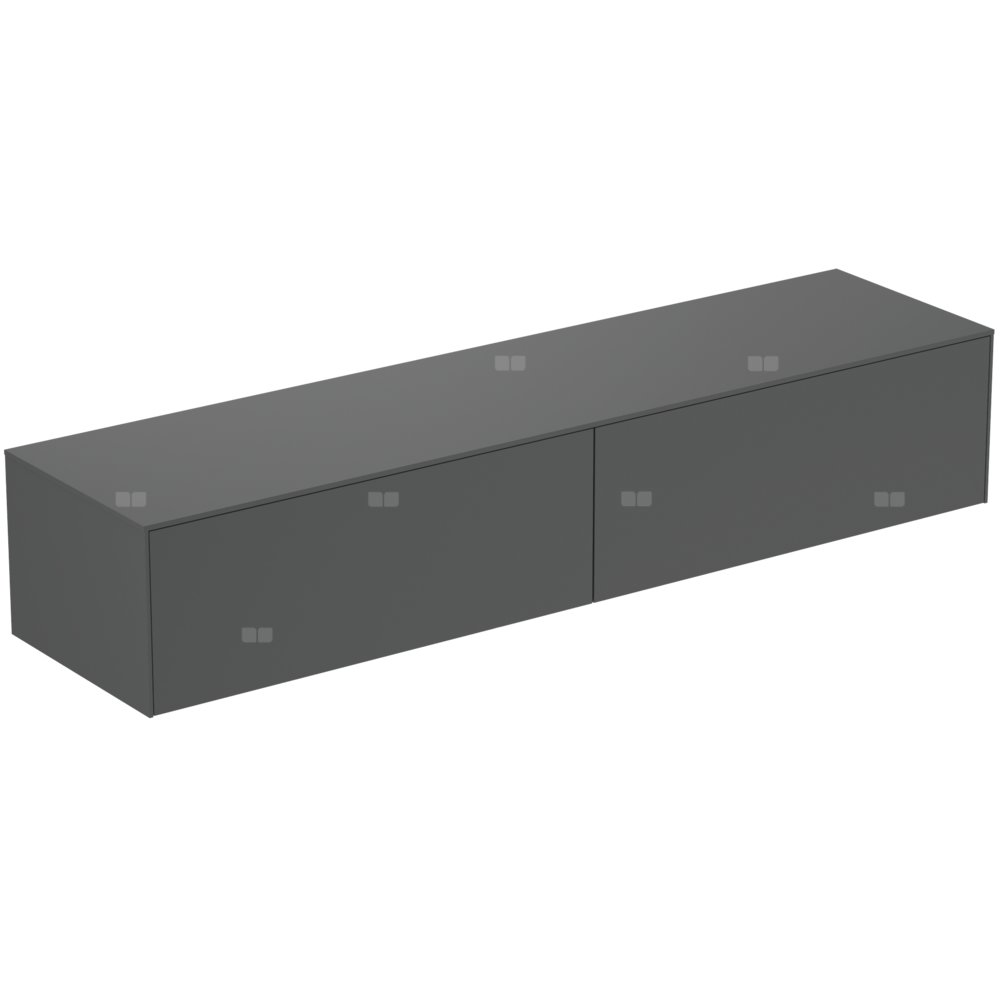 Szafka 200 cm pod umywalkę bez otworu w blacie, wysokość 37 cm. 1985 x 505 x 370 mm, 70,8 kg. 2 zewnętrzne szuflady - otwieranie szuflady typu "Push to open" z samodomykaniem “Soft close". Wewnętrzne wykończenie w kolorze antracyt, dopasowane do koloru prowadnic szuflady. Otwór w blacie na umywalkę do wykonania zgodnie z szablonem umywalki. Do skompletowania z: Conca umywalki mocowane do ściany (szlifowane od spodu): 40/50/60/80/100 cm. Conca umywalka nablatowa: 45/60 cm. Extra umywalki mocowane do ściany (szlifowane od spodu): 45/50/60/70/80/100 cm. Extra umywalka nablatowa: 50/60 cm. Ipalyss umywalka nablatowa: 40/55/60/65/80 cm. Linda-X umywalki mocowane do ściany (szlifowane od spodu): 50/60/75 cm. Linda-X umywalka nablatowa: 45/55 cm. Rekomendowany: syfon oszczędzający przestrzeń EE23033967 (zamawiany oddzielnie).