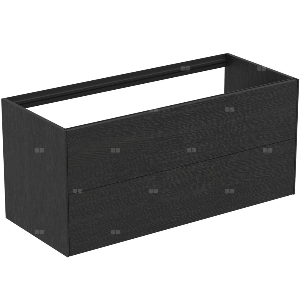 Z 2 zewnętrznymi szufladami z funkcjami push to open i samodomykania "soft close". Wykończenie wewnętrzne szafek w kolorze antracytowym, pasujące do koloru szuflad. Do kompletowania z blatem ceramicznym 120 cm T3972. Blat ceramiczny (bez otworu/z otworem na zamówienie) zamawiany oddzielnie pod wymiar wybranej umywalki. Rekomendowane wyposażenie: syfon oszczędzający przestrzeń EE23033967 - dostępny w osobnym zamówieniu.