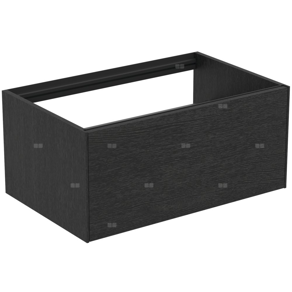 Z 1 szufladą z funkcjami push to open i samodomykania "soft close". Wykończenie wewnętrzne szafek w kolorze antracytowym, pasujące do koloru szuflad. Do kompletowania z blatem ceramicznym 80 cm T3970. Blat ceramiczny (bez otworu/z otworem na zamówienie) zamawiany oddzielnie pod wymiar wybranej umywalki. Rekomendowane wyposażenie: syfon oszczędzający przestrzeń EE23033967 - dostępny w osobnym zamówieniu.