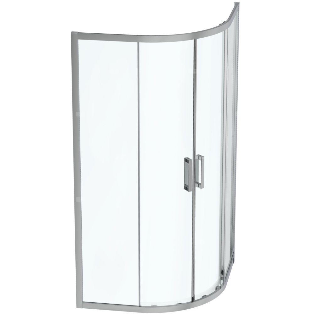Kabina prysznicowa narożna, półokrągła. Komplet z drzwiami przesuwnymi. Wysokość: 195 cm. Promień: 55 cm. Wykonana z bezpiecznego, transparentnego szkła, 6 mm. Powłoka Ideal Clean o właściwościach zabezpieczających. przed osadzaniem się kamienia. Aluminowa rama, wykończenie: Srebrny Mat lub Biały. Wygodne, chromowane uchwyty, 225 mm. Funkcja Click & Clean (możliwość łatwego odpięcia dolnej części. drzwi). Drzwi przesuwne osadzone na płynnie pracujących rolkach. Regulowane profile ułatwiające dopasowanie kabiny do 25 mm. Kabina do skompletowania ze wszystkimi brodzikami Ideal Standard. o odpowiednich wymiarach lub montowana bezpośrednio. na płytkach.