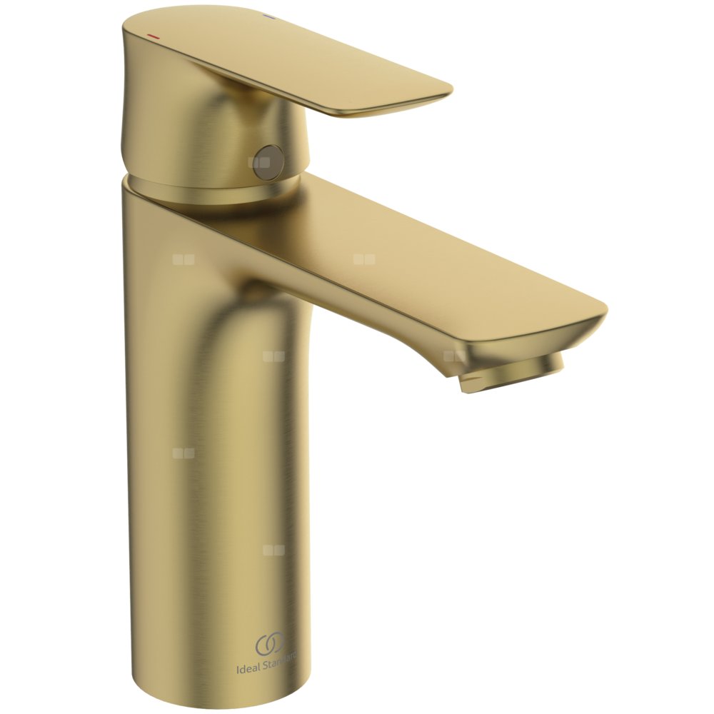 Bateria umywalkowa jednootworowa Grande do niskiego ciśnienia ND. Bez metalowego korka automatycznego. Mosiężny, odlewany korpus 48 mm. Metalowy uchwyt z nadrukowanymi czerwonymi i niebieskimi oznaczeniami. Mocowanie uchwytu przedniego. Chromowany przycisk. Przepływ M24x1 do niskiego ciśnienia, głowica FirmaFlow 38 mm z ogranicznikiem temperatury. Bez funkcji Click. Elastyczne wężyki przyłączeniowe PEX G3/8" (3 szt.).