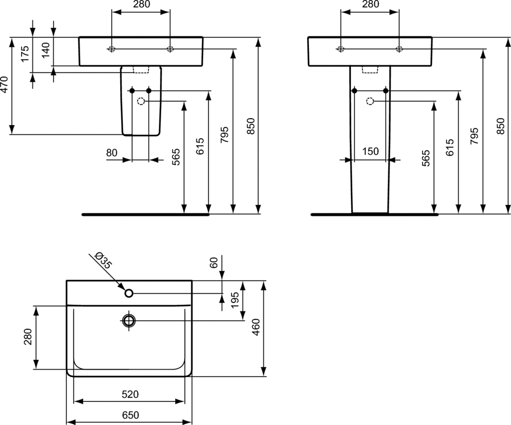 Z otworem na baterię i bez przelewu (bez przelewu do skompletowania z korkiem D5852AA). Możliwość skompletowania z postumentem E7973, półpostumentem dużym E7974 lub odpowiednimi meblami. Brak zestawu montażowego, rekomendowany zestaw typu M10 x 140 mm. Zalecane dodatkowe elementy: Postument E7973xx. Półpostument E7974xx. Zestaw montażowy M10 x 140 mm WW965340. Syfon G1 1/4 A2305AA. Przyłącze kątowe B7883AA. Rozeta do syfonu G1 1/4 B4801AA. Korek G1 1/2 do umywalek bez przelewu D5852AA.