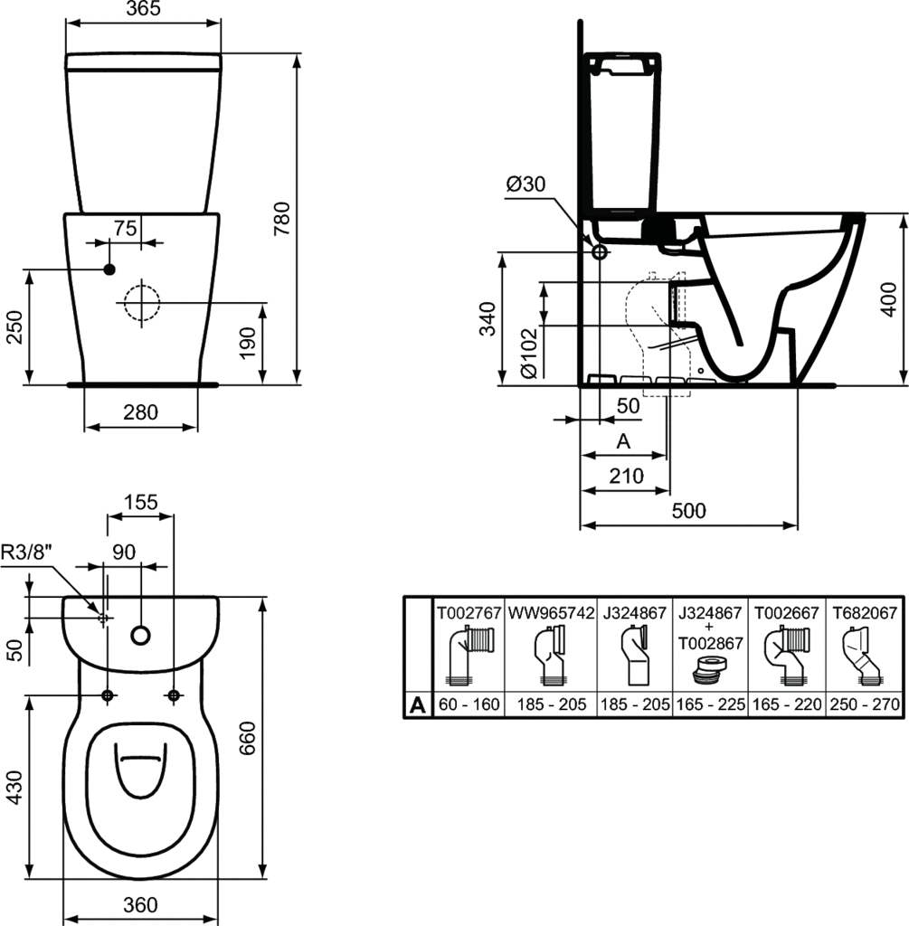 Kompakt WC. Miska o kształcie przylegającym do ściany. Do skompletowania ze zbiornikiem i wolnoopadającą lub zwykłą deską sedesową w wersji typowej lub THIN. Odpływ poziomy, do odpływu pionowego należy zamówić kolano przyłączeniowe 90° J324867. Zestaw montażowy TT0257919 w komplecie. Konieczne dodatkowe elementy: Zbiornik do kompaktu CUBE, zbiornik 3/6 l, dopływ wody z dołu E7970xx lub. Zbiornik do kompaktu CUBE, zbiornik 3/6 l, dopływ wody z boku E7971xx lub. Zbiornik do kompaktu Scandinavian, zbiornik 3/6 l, dopływ wody z dołu E7175xx lub. Zbiornik do kompaktu ARC, zbiornik 3/6 l, dopływ wody z dołu E7856xx lub. Zbiornik do kompaktu ARC, zbiornik 3/6 l, dopływ wody z boku E7861xx. Deska sedesowa typu Thin, z duroplastu E772301 lub. Deska sedesowa typu Thin, z duroplastu, wolnoopadająca E772401 lub. Deska sedesowa, z duroplastu E712801 lub. Deska sedesowa, z duroplastu, wolnoopadająca E712701. Zalecane dodatkowe elementy: Kolano przyłączeniowe 90° J324867.