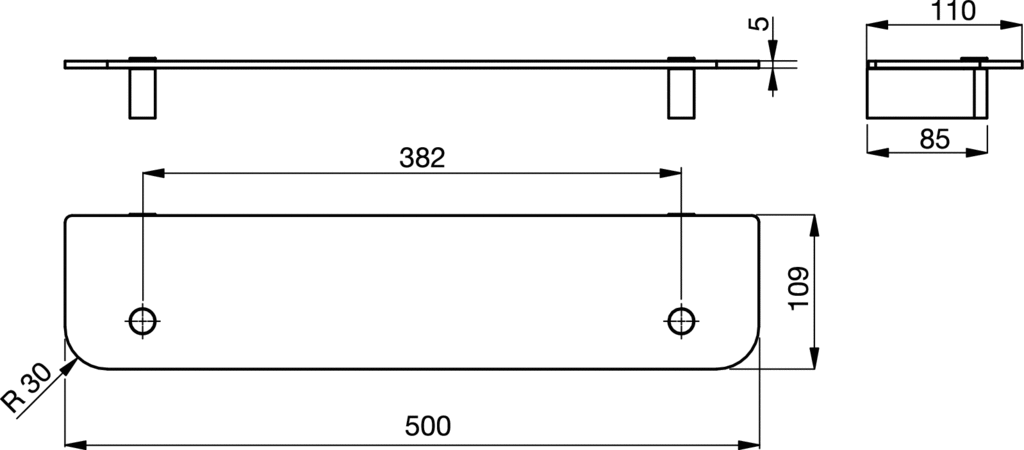CONNECT PÓŁKA SZKLANA 500 X 110 X 40 MM