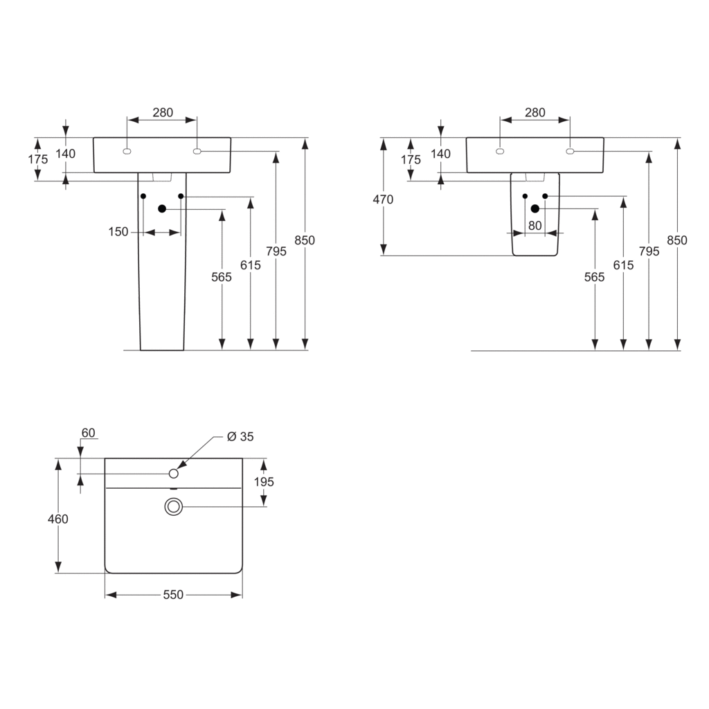 Z otworem na baterię i bez przelewu (bez przelewu do skompletowania z korkiem D5852AA). Możliwość skompletowania z postumentem E7973, półpostumentem dużym E7974 lub odpowiednimi meblami. Brak zestawu montażowego, rekomendowany zestaw typu M10 x 140 mm. Zalecane dodatkowe elementy: Postument E7973xx. Półpostument E7974xx. Zestaw montażowy M10 x 140 mm WW965340. Syfon G1 1/4 A2305AA. Przyłącze kątowe B7883AA. Rozeta do syfonu G1 1/4 B4801AA. Korek G1 1/2 do umywalek bez przelewu D5852AA.