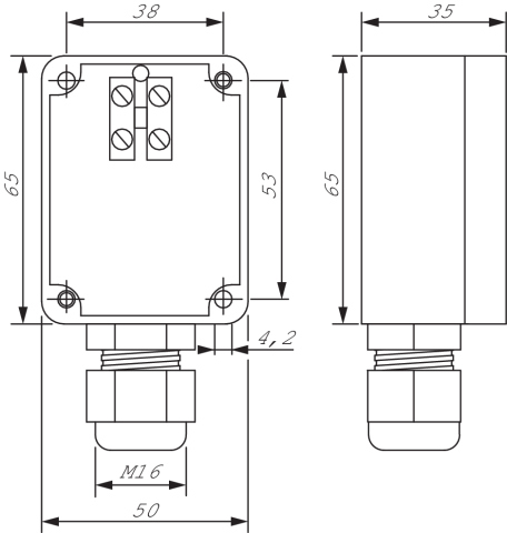 Obudowa z materiału izolacyjnego - poliwęglanu wzmocnionego włóknem szklanym, kolor szary podobny do RAL 7035. Mocowanie za pomocą dwóch do czterech śrub 4 mm (nie wchodzą w zakres dostawy).