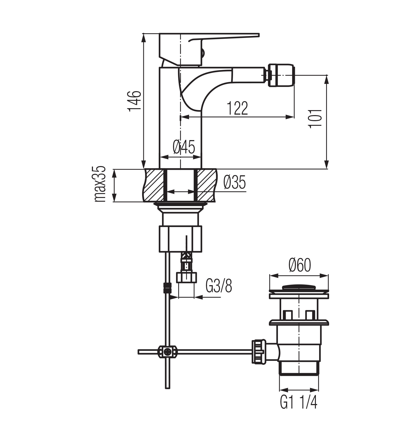 DALI Bateria bidetowa stojąca z korkiem spustowym