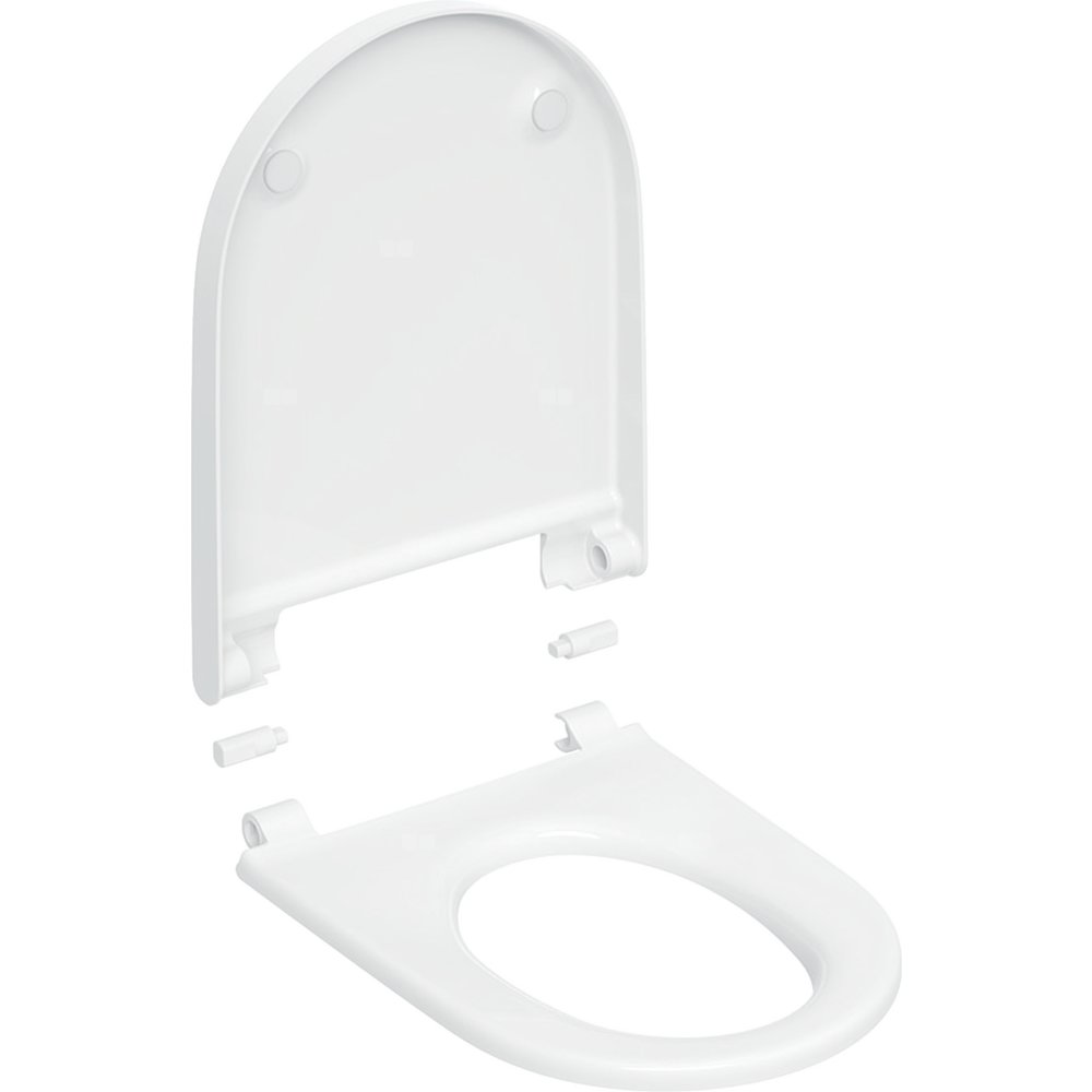 Zestaw wiszącej miski WC Geberit iCon, lejowa, ukryte mocowania, TurboFlush, z deską sedesową: T=53cm, Wolne opadanie=Tak, Zawiasy wypinane=Blokowane, Mocowanie=Od góry, Biały