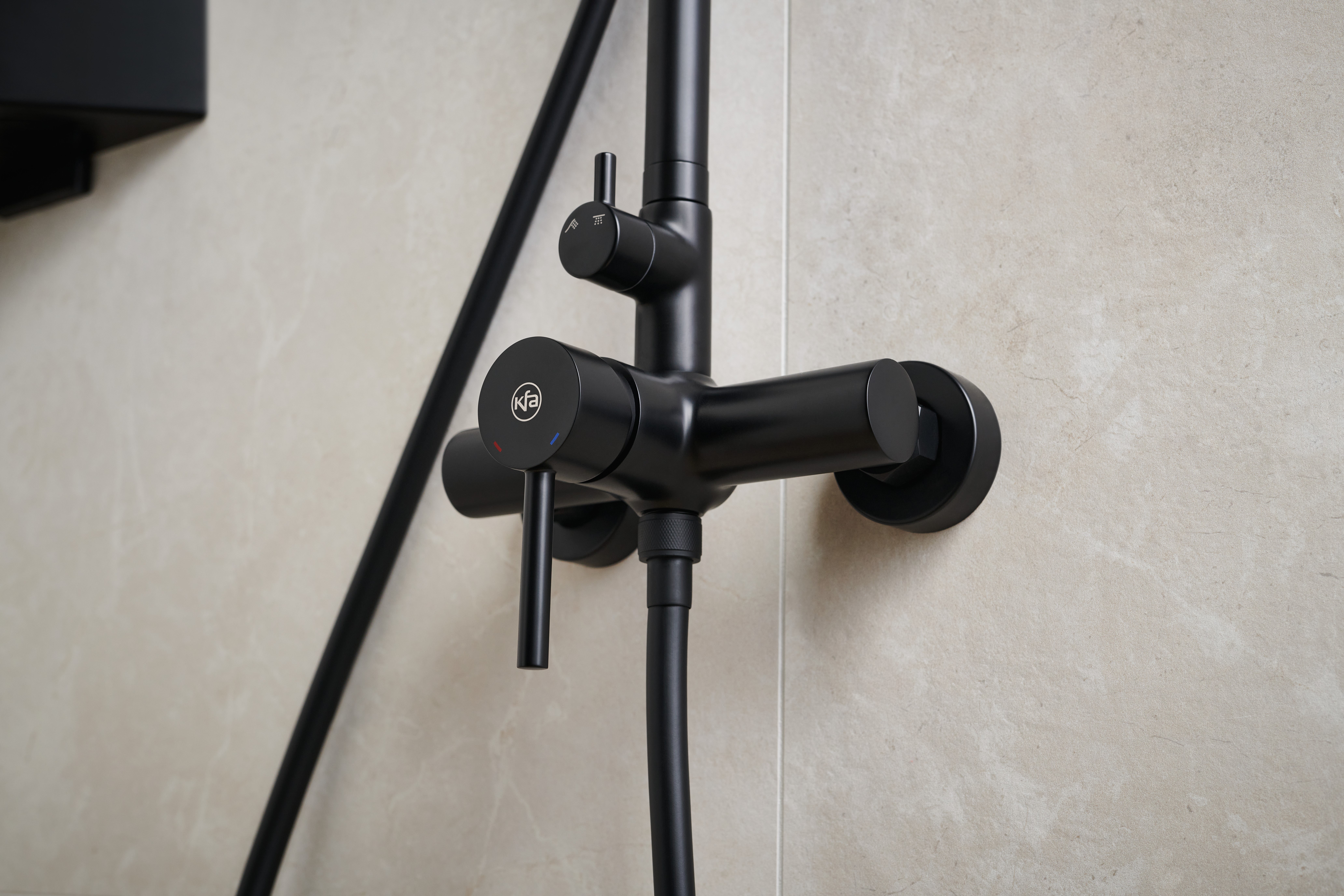 Deszczownia MOZA z baterią natryskową ścienną, black