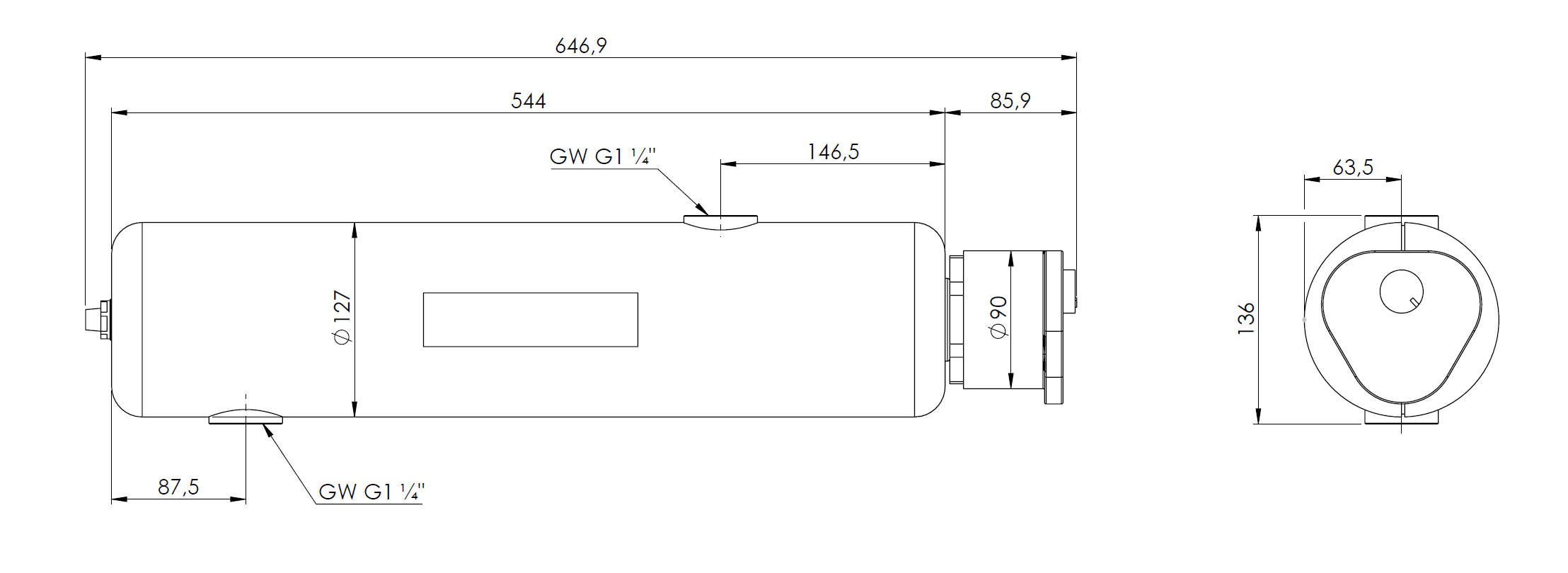 Dogrzewacz przepływowy BEH 463 z grzałką o mocy 3,0 kW, 230 V AC, 2x GW G1 1/4'', 1x GW G1/2''
