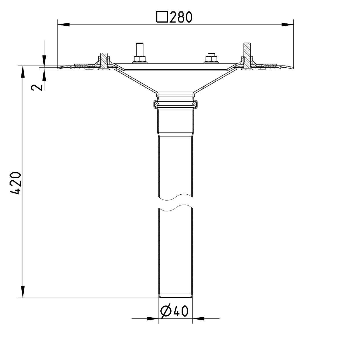 Dolna część DN =40mm, z kołnierzem i przeciwkołnierzem do pojedynczej warstwy izolacyjnej