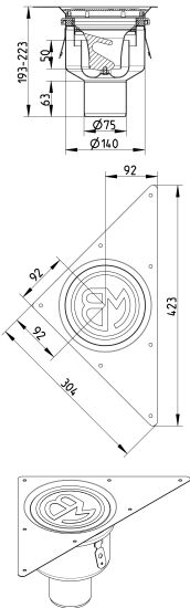 Dolna część MULTI do wpustów TRIO, odpływ 75 mm, odpływ pionowy z syfonem