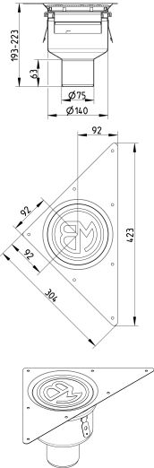 Dolna część MULTI do wpustów TRIO, odpływ 75 mm, odpływ pionowy