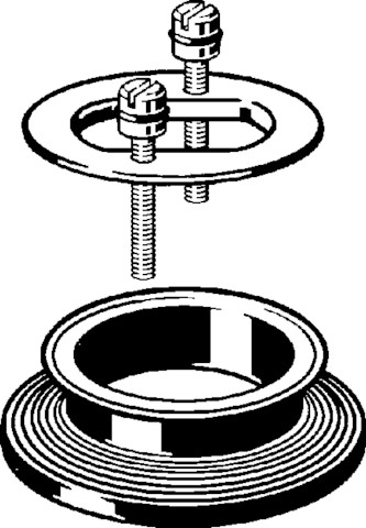 Domoplex-zestaw montażowy. Przeznaczenie: otwór odpływowy Ø 52 mm, seria produkcyjna od 1996. Wyposażenie: Śruby, kołnierz ze stali nierdzewnej, uszczelka, poz. rys. 2, nr wzoru 6928.1-90C, nr kat. 232 405,