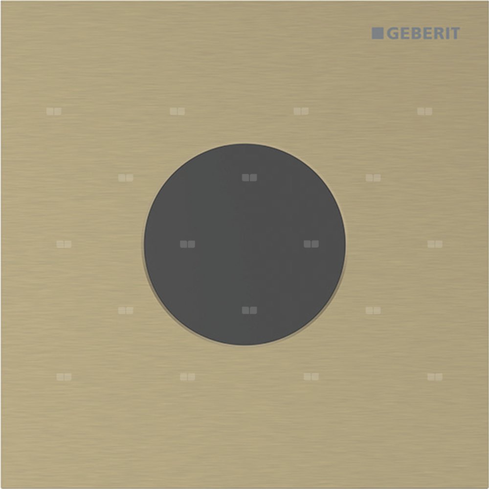 Płytka przykrywająca z ryglem zabezpieczającym Precyzyjne wykrywanie odległości użytkownika przez czujnik IR Czujnik podczerwieni z funkcją samoregulacji Wykrywanie za pomocą podczerwieni z funkcją wytłumienia tła Możliwość regulacji trybu hybrydowego oszczędzającego wodę Możliwość regulacji czasu spłukiwania Możliwość regulacji spłukiwania okresowego Dynamiczne ustawienie czasu spłukiwania Możliwość regulacji spłukiwania wstępnego Możliwość przestawienia na pracę z pisuarem z pokrywą Zasilanie z sieci elektrycznej Gotowy do działania po podłączeniu do sieci elektrycznej Zasilacz z kontrolką LED Ponowne uruchomienie w wypadku przerwy w dopływie prądu Funkcja zamykania zaworu w przypadku braku zasilania Jednokrotne spłukanie po podłączeniu do prądu Możliwość zmiany ustawień oraz odczytu statystyk za pomocą pilota serwisowego Geberit Service-Handy Ustawienia i obsługa urządzenia za pomocą urządzenia mobilnego przez zintegrowany interfejs Bluetooth® Kompatybilny z aplikacją Geberit Control Możliwość wyłączenia uruchamiania spłukiwania Możliwość zredukowania ilości spłukiwanej wody poprzez zestaw montażowy regulatora przepływu do 0,5 l na spłukanie Poziom hałasu armatury Grupa II, zgodnie z DIN 4109 Do automatycznego uruchamiania spłukiwania pisuarów Do stelaży podtynkowych Geberit do pisuaru z uruchamianiem z przodu Do montażu w skrzynkach montażowych do zaworów spłukujących Geberit do pisuaru (produkowanych od 2009 roku) Kolor główny: W kolorze mosiądzu Powierzchnia: Szczotkowany, powlekany easy-to-clean
