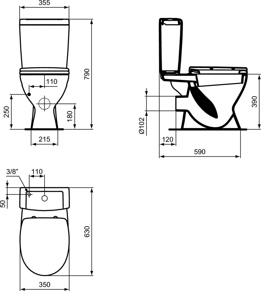 Kompakt WC Eurovit+ ścisle mocowany stojący: Washdown, with horizontal outlet. Zbiornik z dolnym dopływem o pojemności 6/3 l. W komplecie z zestawem montażowym do miski WC oraz deską sedesową z pokrywą i zawiasami wolnoopadającymi.