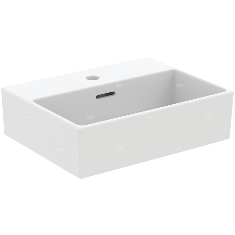 Umywalka Extra do mycia rąk z 1 wybitym otworem na baterię oraz przelewem (kształt szczelinowy). Nieszlifowana od spodu (szkliwiona od spodu): nieodpowiednia do montażu na blacie (nie zapewnia dostatecznie płaskiej powierzchni). Dowiedz się więcej o zalecanym wyposażeniu w katalogu lub cenniku Atelier Collections.