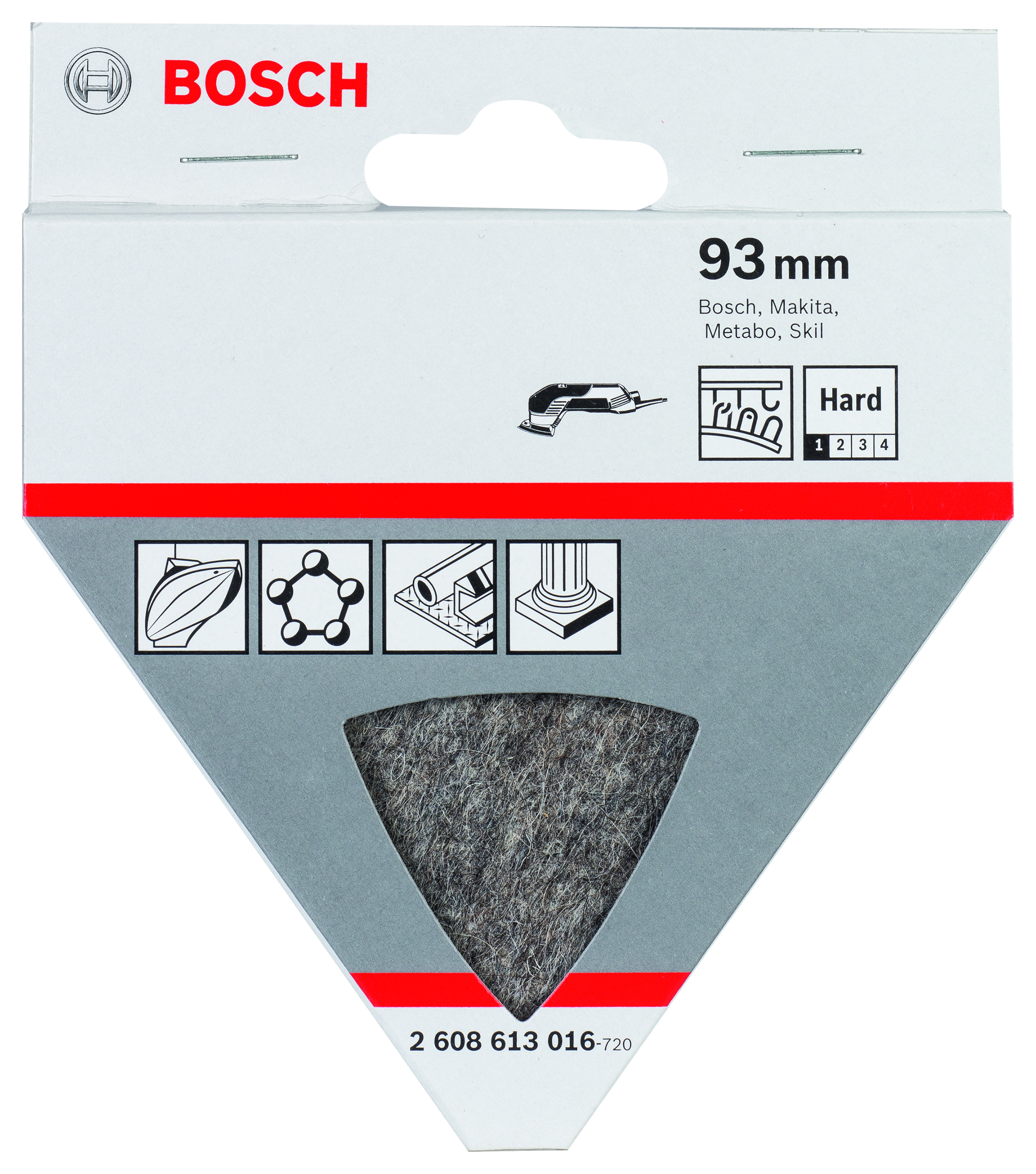 Tekst produktu, osprzęt szary Filc polerski Do wstępnego polerowania silnie zabrudzonych i porysowanych powierzchni – przy zastosowaniu politury lub pasty szlifierskiej na równych powierzchniach
