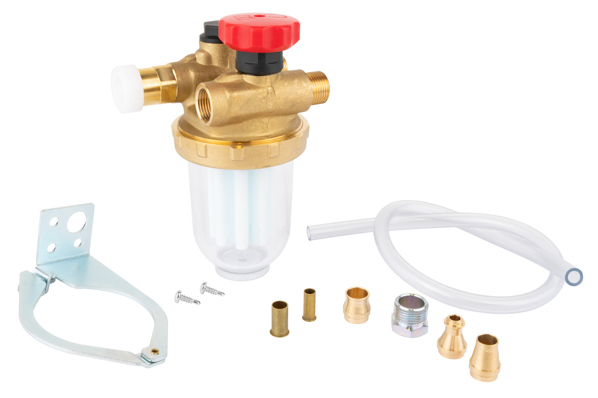 Filtr olejowy AFRISO R500Si jednorurowy z powrotem fi 3/8'' x 3/8'' GW x GZ, z wkładem plastikowym, maks. przepływ 210 l/h