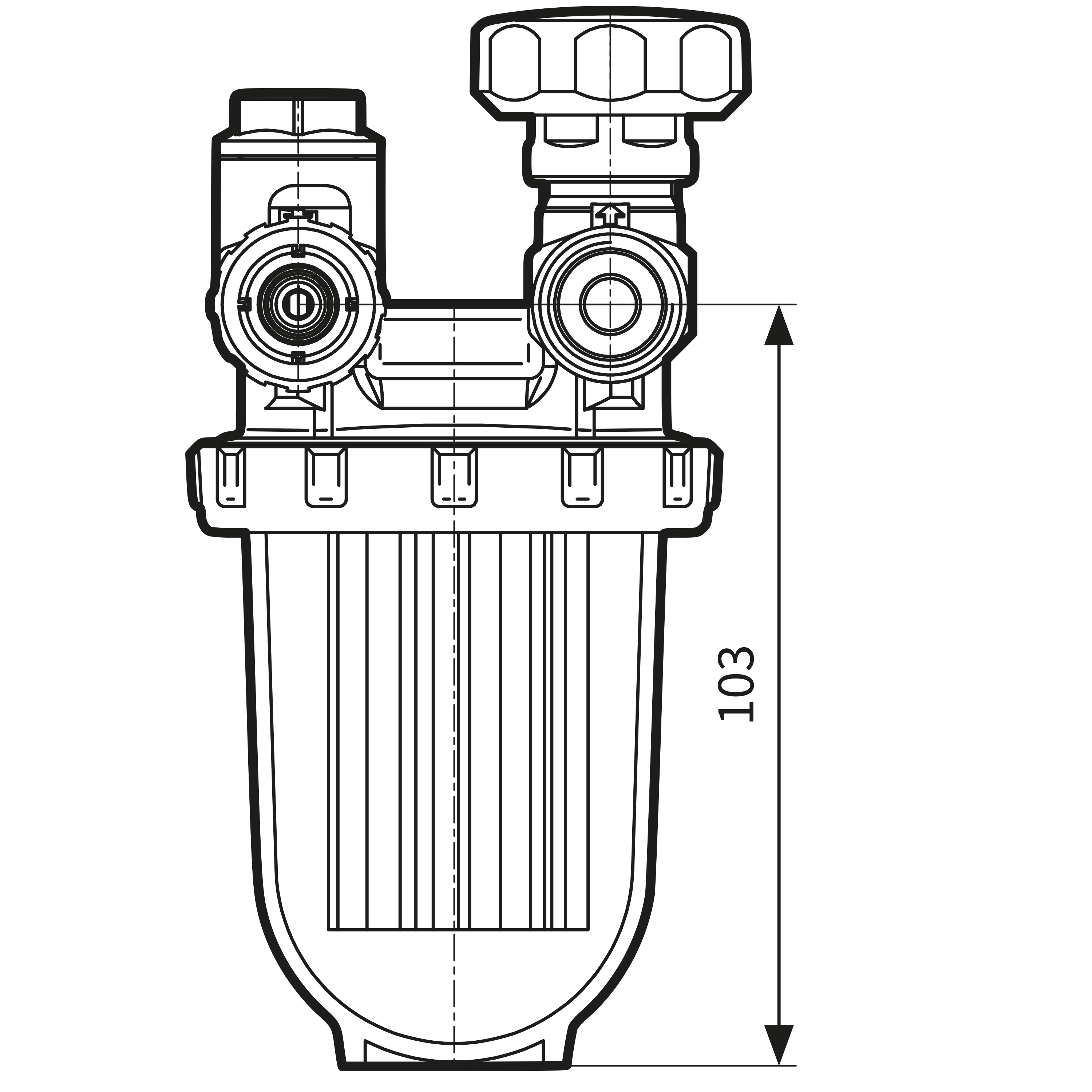 Filtr olejowy AFRISO R500St jednorurowy z powrotem fi 3/8'' x 3/8'' GW x GZ, z wkładem stalowym, maks. przepływ 250 l/h