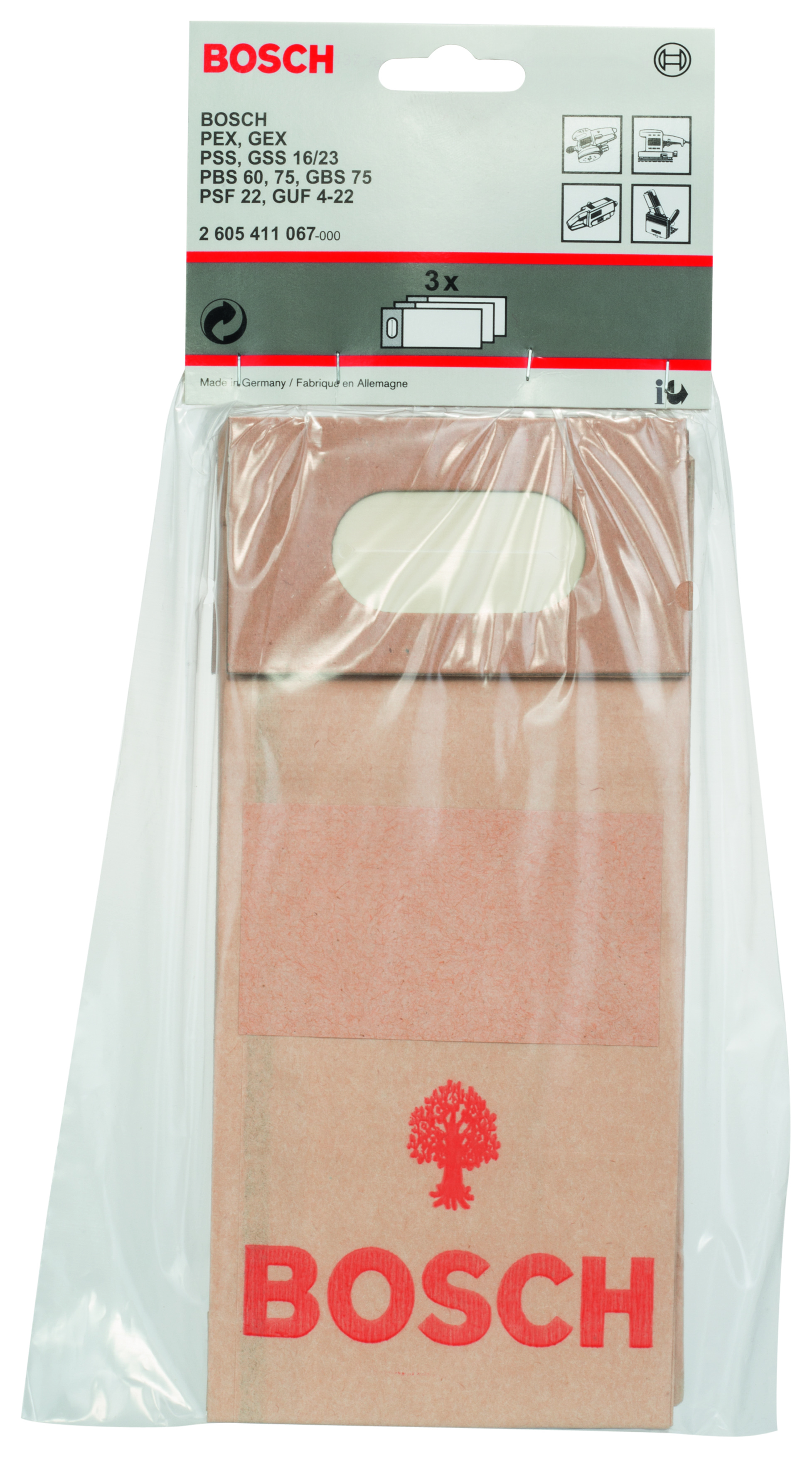 Tekst produktu, osprzęt szary Worek na pył do szlifierek taśmowych, mimośrodowych i orbitalnych oraz frezarek uniwersalnych Odpowiednie także do PEX 11 A/11 AE/115 A-1, GEX 125 A