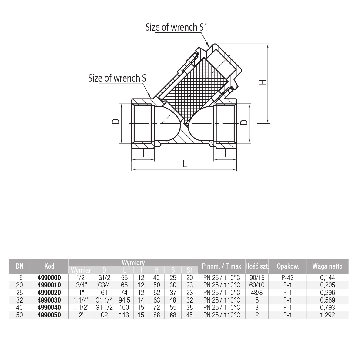 Filtr typu Y VALVEX PIZA śrut Gwint wewnętrzny 1/2''