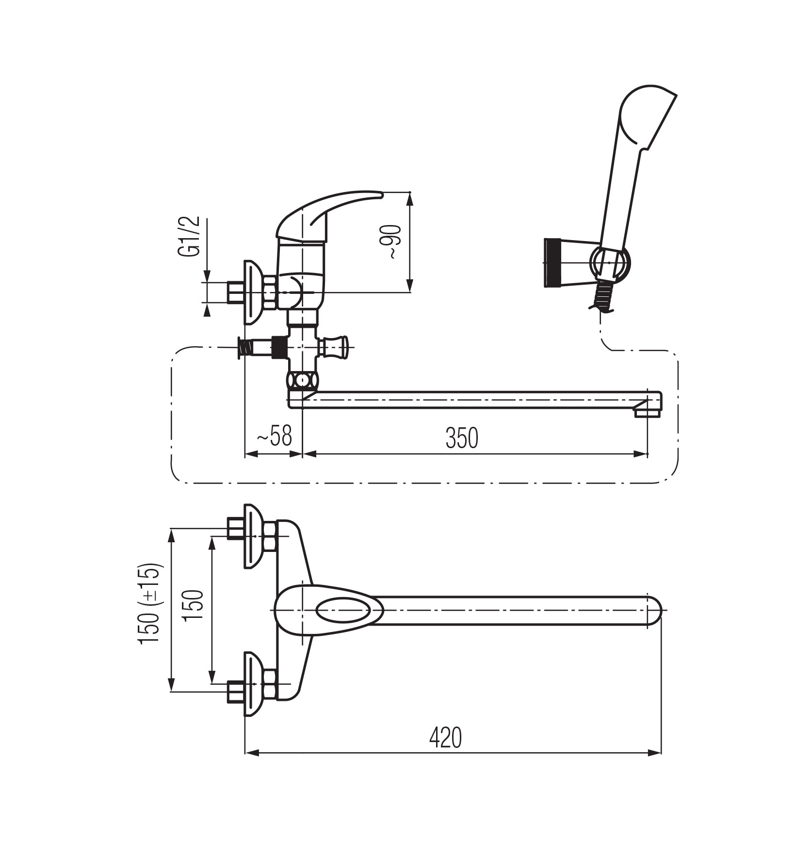GALEO Bateria wannowa/umywalkowa ścienna z akcesoriami