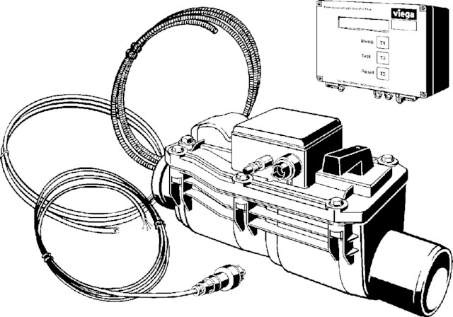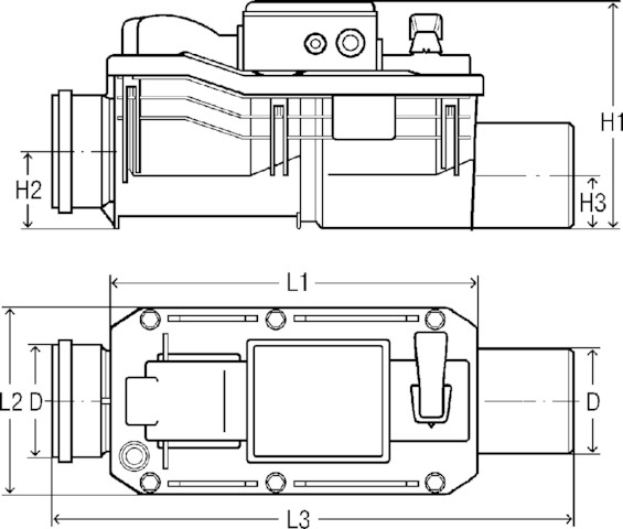 Grundfix Plus Control-zasuwa zwrotna, Typ 3. Przeznaczenie: instalacje kanalizacyjne fekaliowe, podwójne zabezpieczenie przeciwzalewowe (jedno automatyczne z napędem i jedna awaryjna klapa ręczna), zabezpieczone przed zalaniem. Wyposażenie: Grundfix Plus Control-urządzenie sterujące i sygnalizujące, element obsługowy z trzema przyciskami i wyświetlaczem tekstowym LCD, test automatyczny co 24 h, zasilanie awaryjne dzięki dodatkowej baterii, optyczny/akustyczny sygnał ostrzegawczy, klapa zamykana automatycznie, klapa zwrotna, uruchamianie ręczne, przewód ciśnieniowy, kabel przyłączeniowy, rura osłonowa 8 m do kabla i węża ciśnieniowego, urządzenie do prób, wg PN-EN 13564, nr wzoru 4987.41, nr kat. 667 788, DN: 100 d: 110 L1: 405 L2: 215 L3: 545 H1: 260 H2: 100 H3: 65