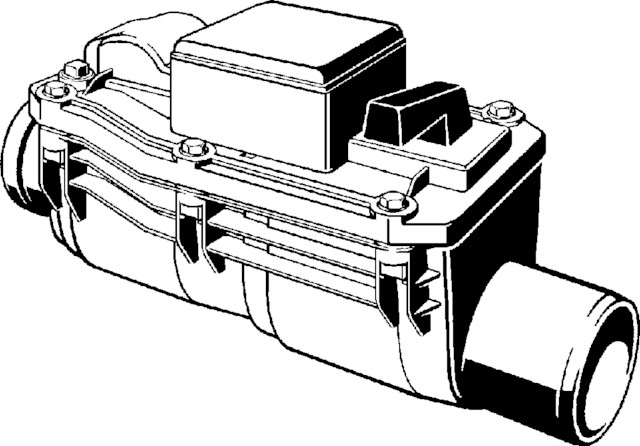 Grundfix-zasuwa zwrotna, Typ 2. Przeznaczenie: instalacja kanalizacyjna bezfekaliowa, potrójne zabezpieczenie przeciwzalewowe (podwójne automatyczne i jedna ręczna klapa ręczna). Wyposażenie: 2 przegrody z klapą, uruchamianie ręczne, urządzenie do prób, wg PN-EN 13564, nr wzoru 4987.3, nr kat. 305 383, DN: 125