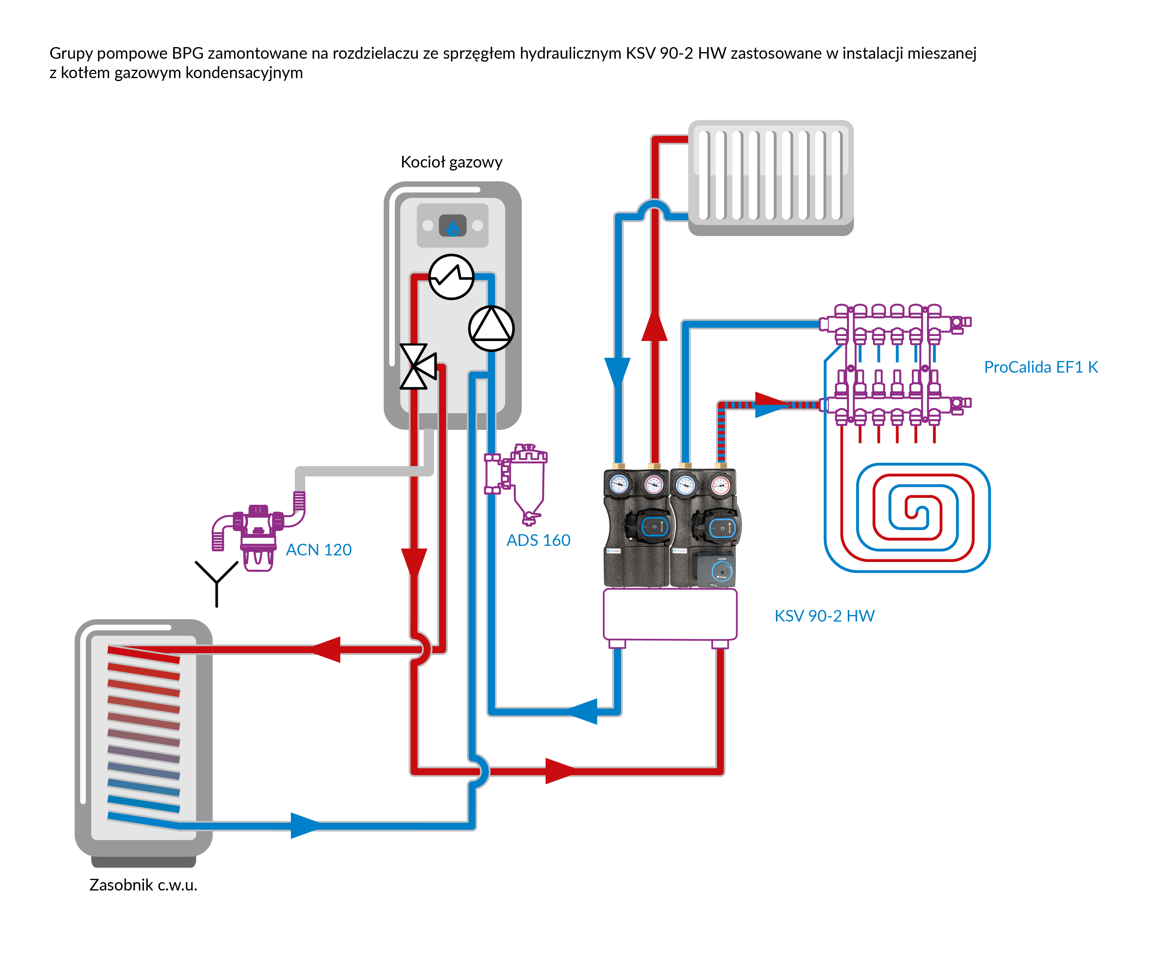 Stosowana w instalacjach grzewczych i chłodzących.Montowana na rozdzielaczu KSV 90 / rozdzielaczu ze sprzęgłem KSV 90 HW lub jako niezależny element instalacji.