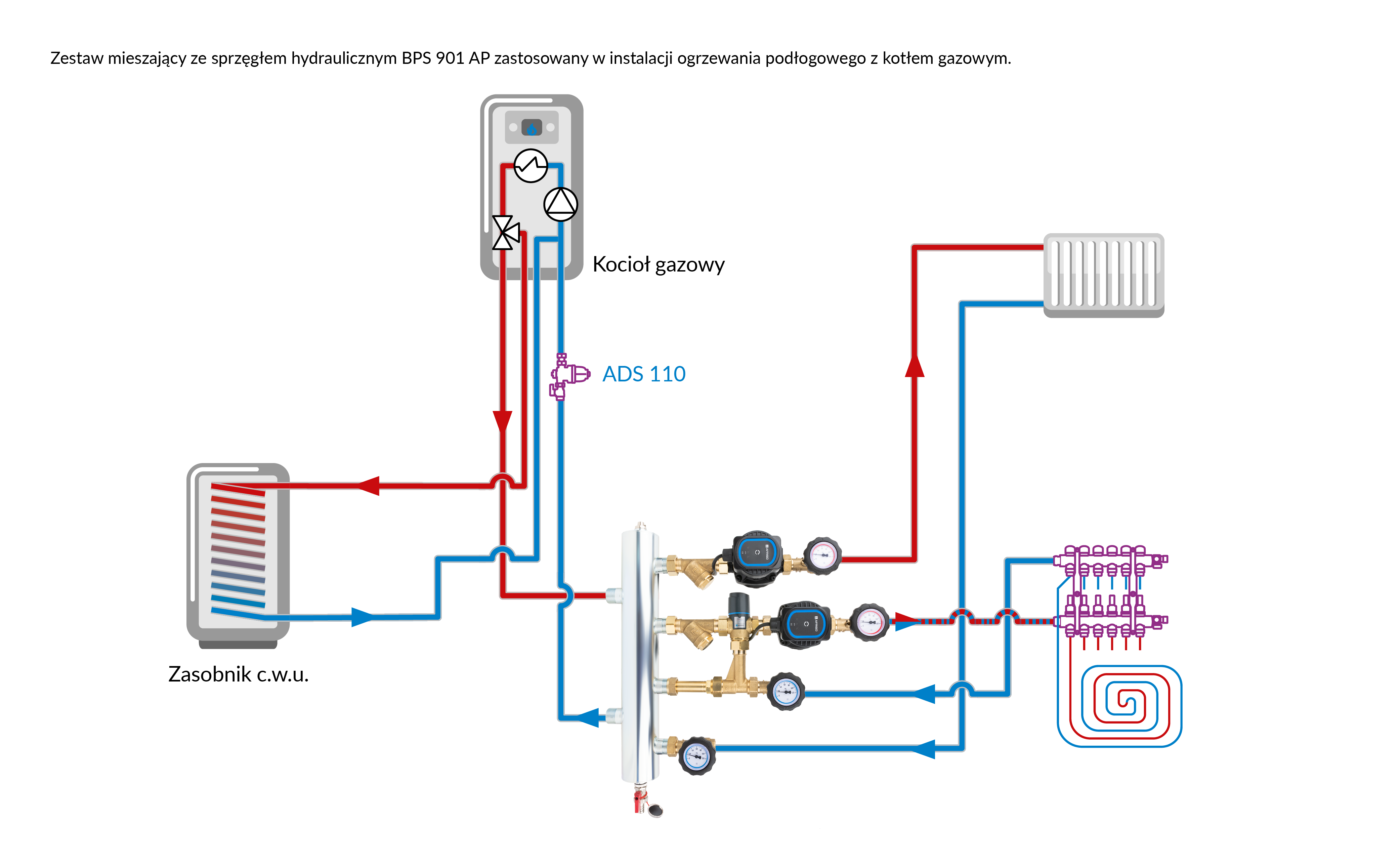 Stosowany w instalacjach grzewczych i chłodzących.Montowany na ścianie między źródłem a instalacją.