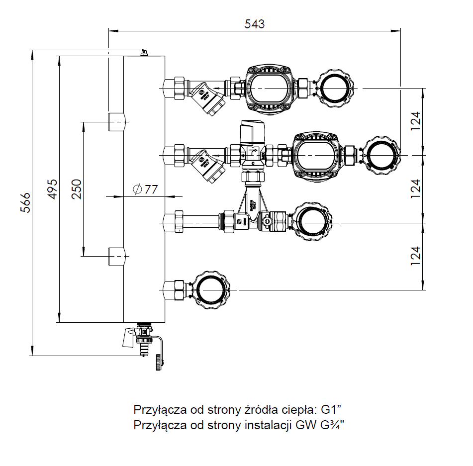 Pozwala na przyłączenie dwóch obiegów grzewczych/chłodzących.