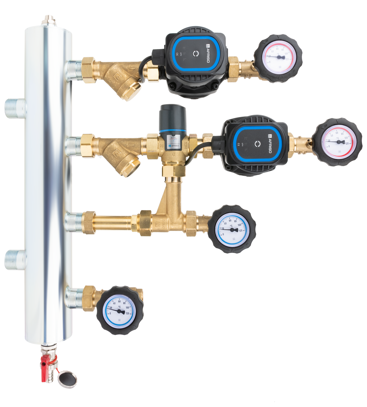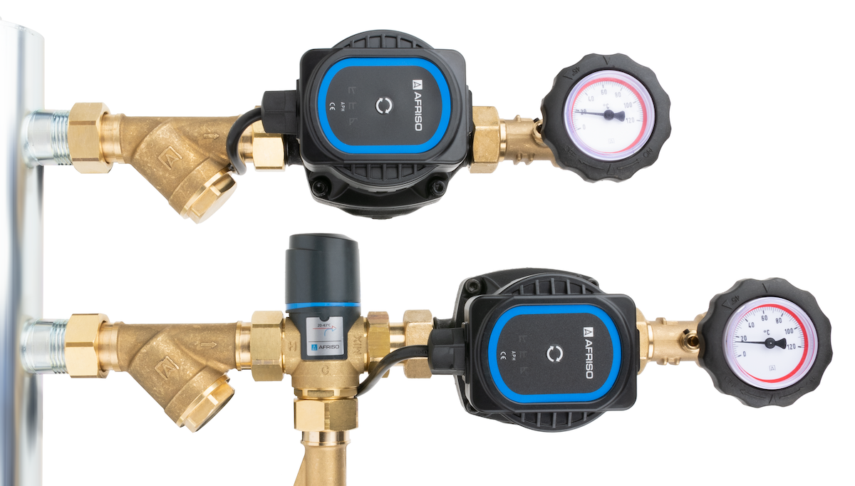 Grupa pompowa AFRISO BPS 901 AP GZ x GW 1'' x 3/4'', z zaworem termostatycznym, z pompą obiegową AFRISO APH 160 15-7/130 mm