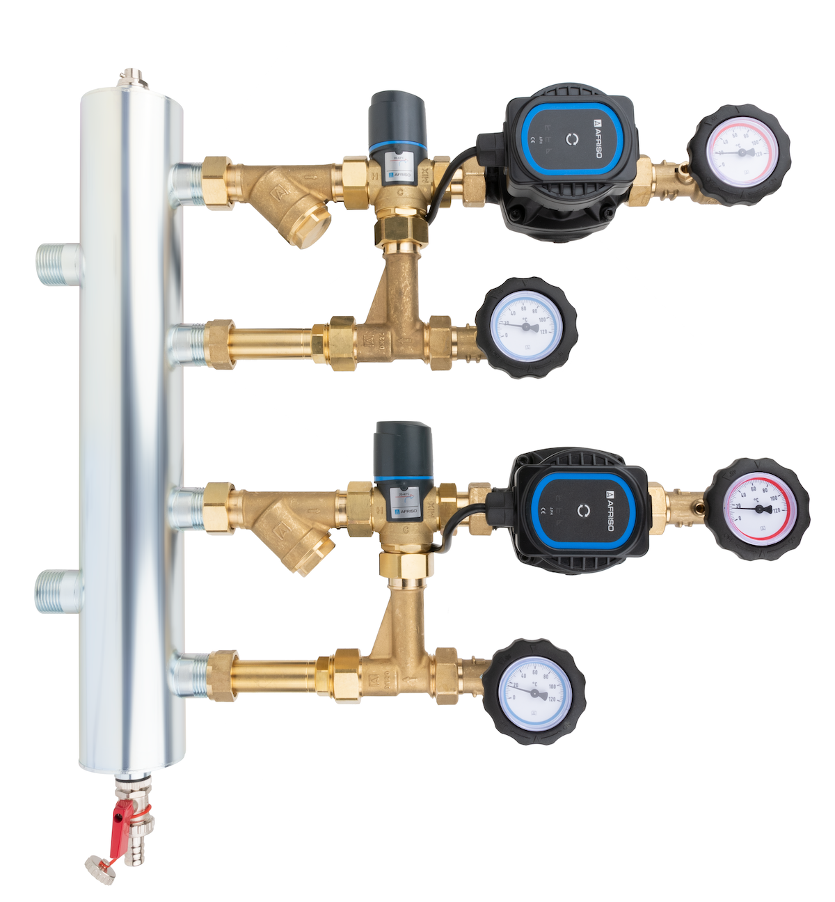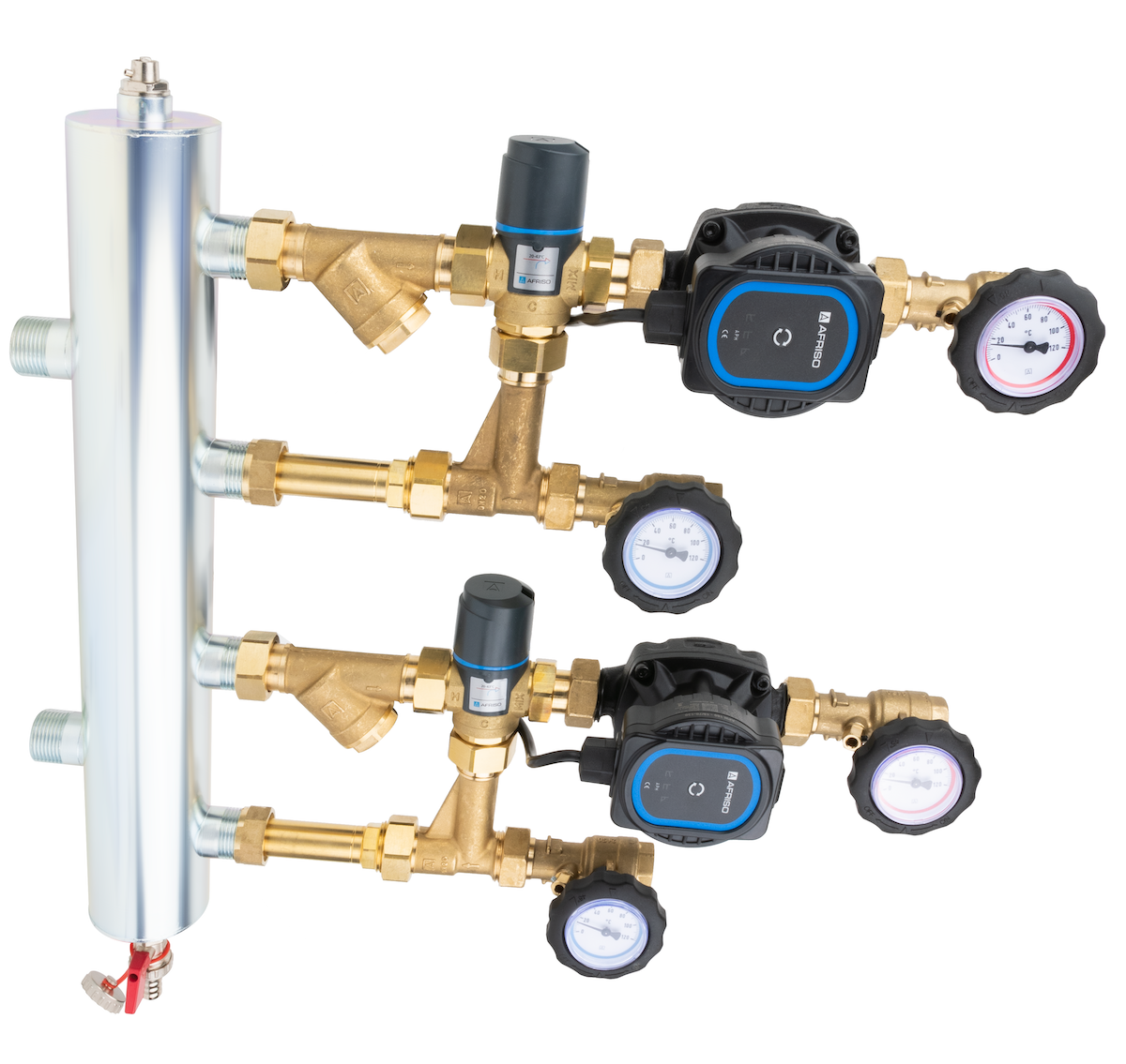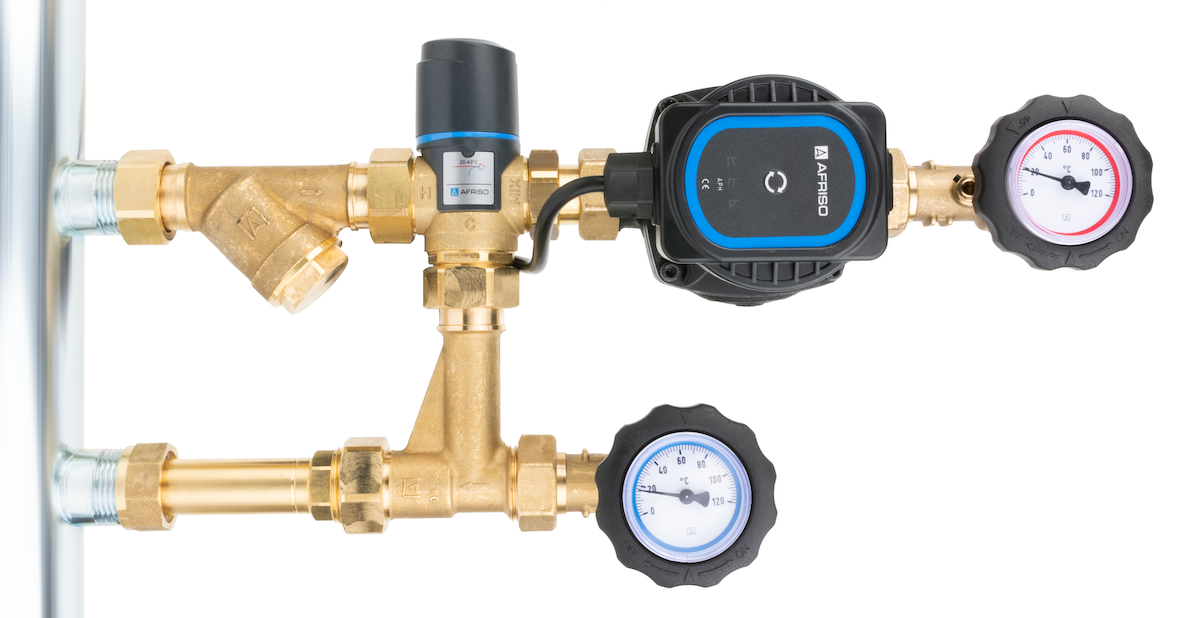 Grupa pompowa AFRISO BPS 911 AP GZ x GW 1'' x 3/4'', z zaworem mieszającym, z zaworem termostatycznym, z pompą obiegową AFRISO APH 160 15-7/130 mm