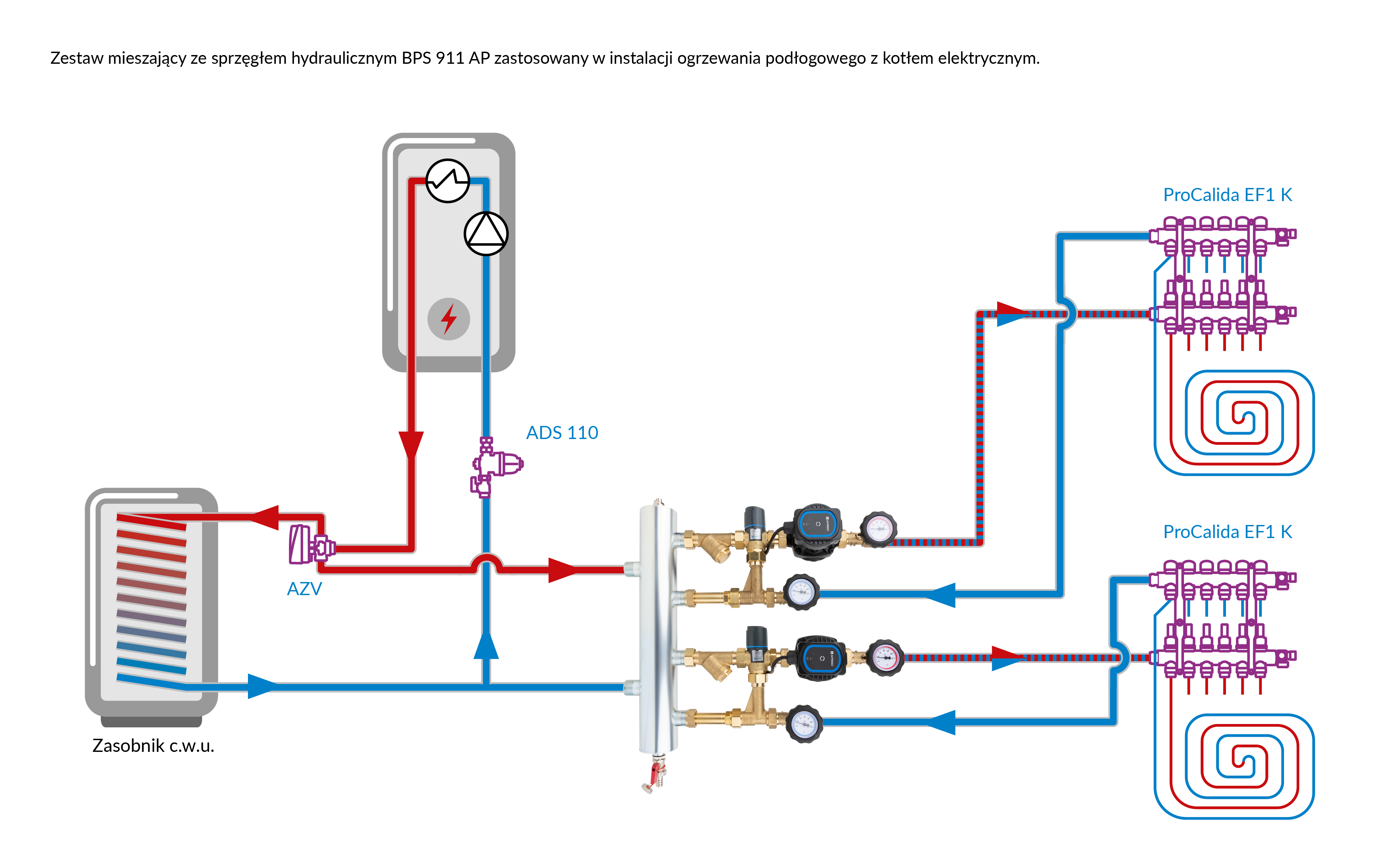 Stosowany w instalacjach grzewczych i chłodzących.Montowany na ścianie między źródłem a instalacją.
