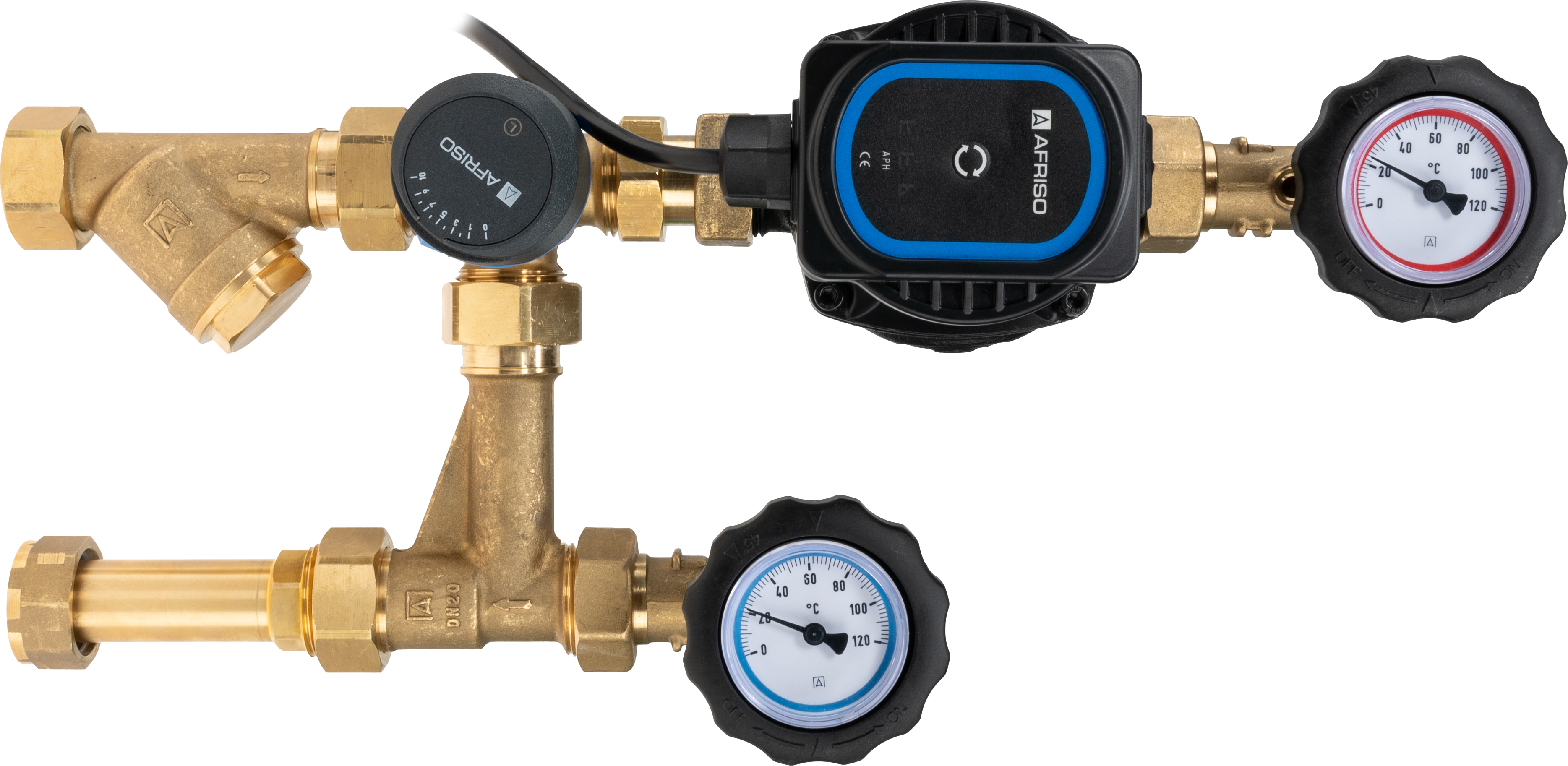 Grupa pompowa AFRISO BPS 996 AP nakrętka x GW 1'' x 3/4'', z zaworem mieszającym, z pompą obiegową AFRISO APH 160 15-7/130 mm