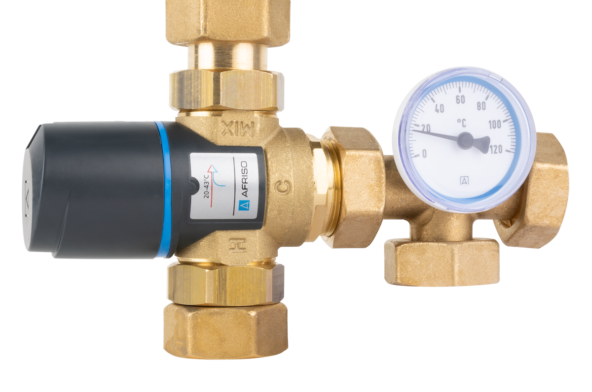 Grupa pompowa AFRISO BTU 501 AP nakrętka x nakrętka 1'' x 1'', z zaworem termostatycznym, z pompą obiegową AFRISO APH 160 15-7/130 mm
