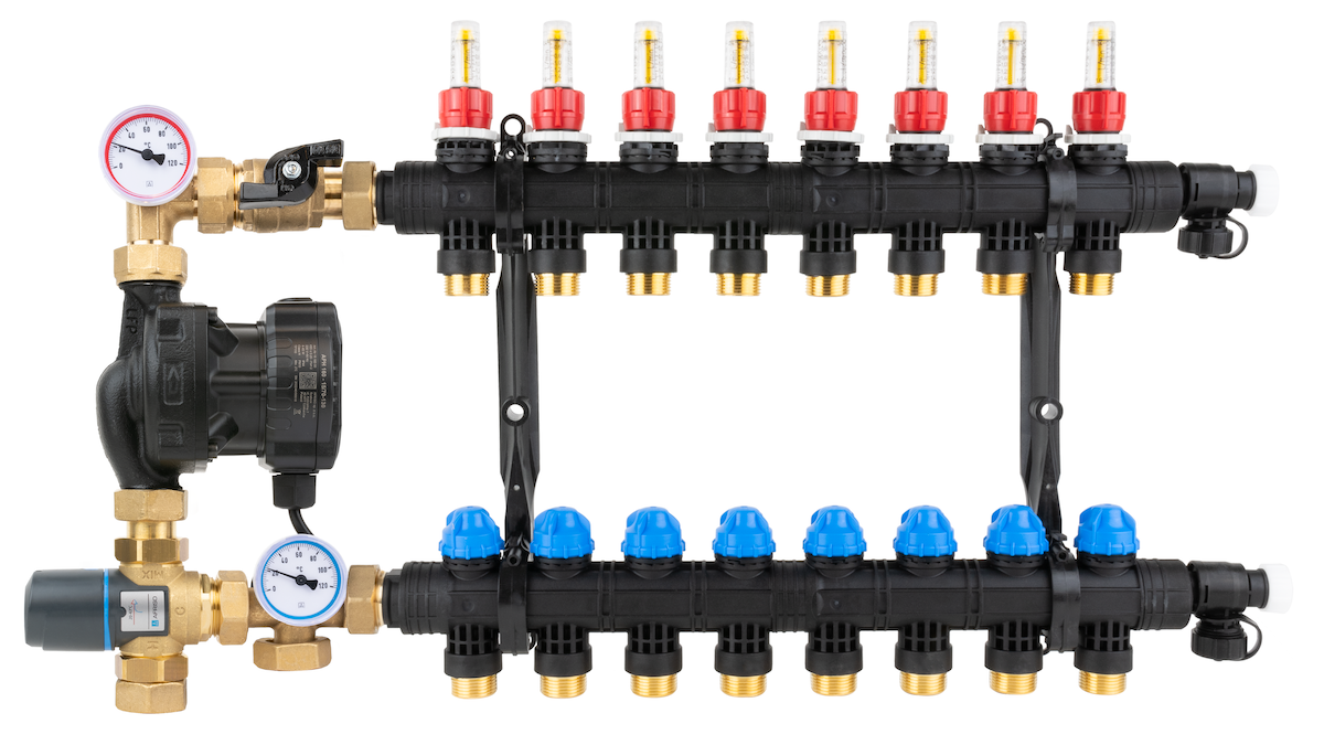 Stosowany w instalacjach grzewczych.Montowany między źródłem ciepła a rozdzielaczem ogrzewania płaszczyznowego w szafce rozdzielacza.