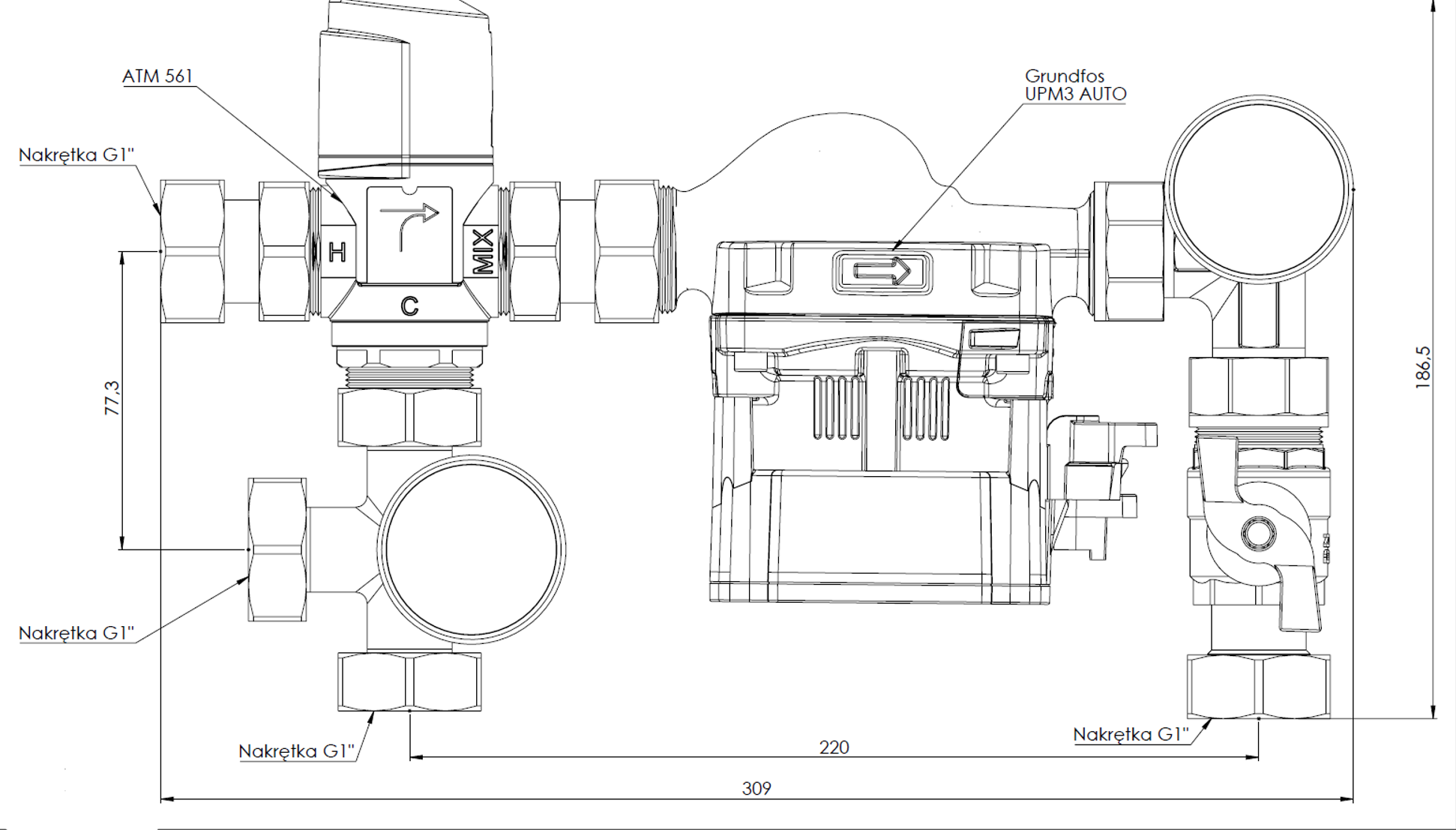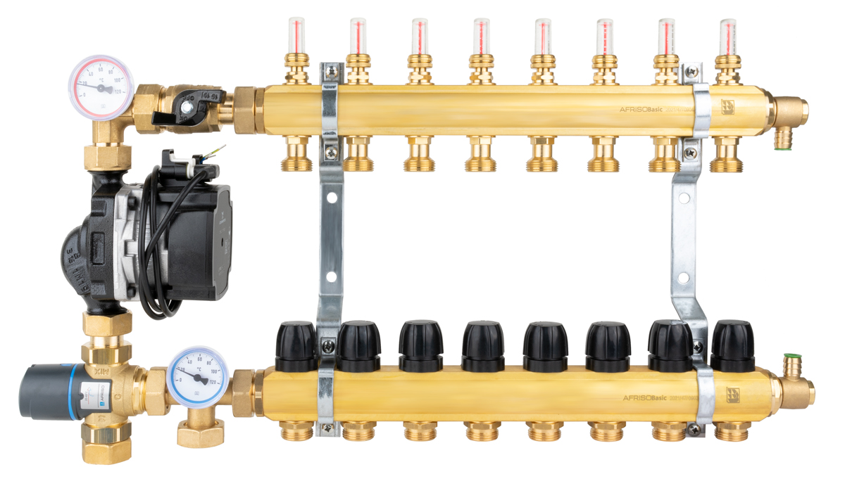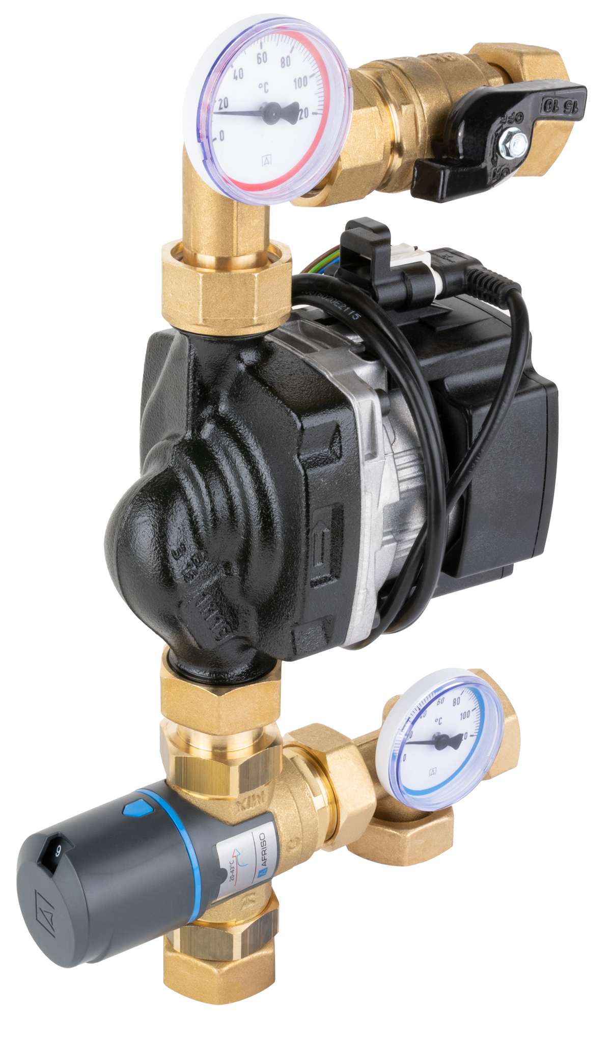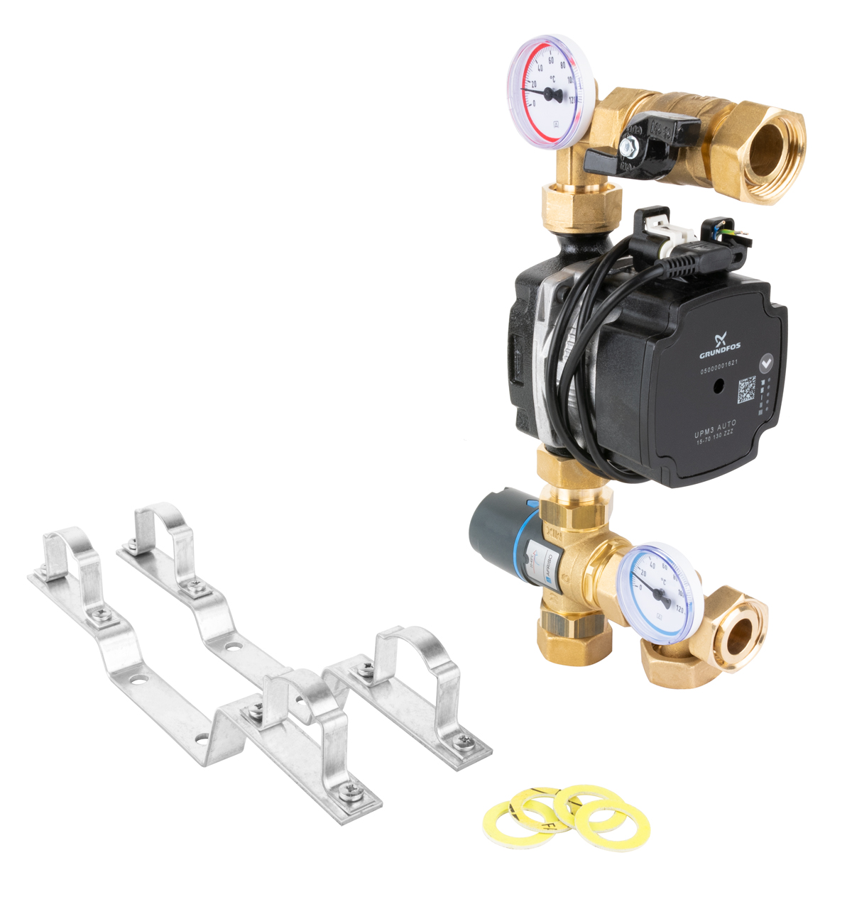 Grupa pompowa AFRISO BTU 501 nakrętka x nakrętka 1'' x 1'', z zaworem mieszającym, z pompą obiegową Grundfos UPM3 Auto