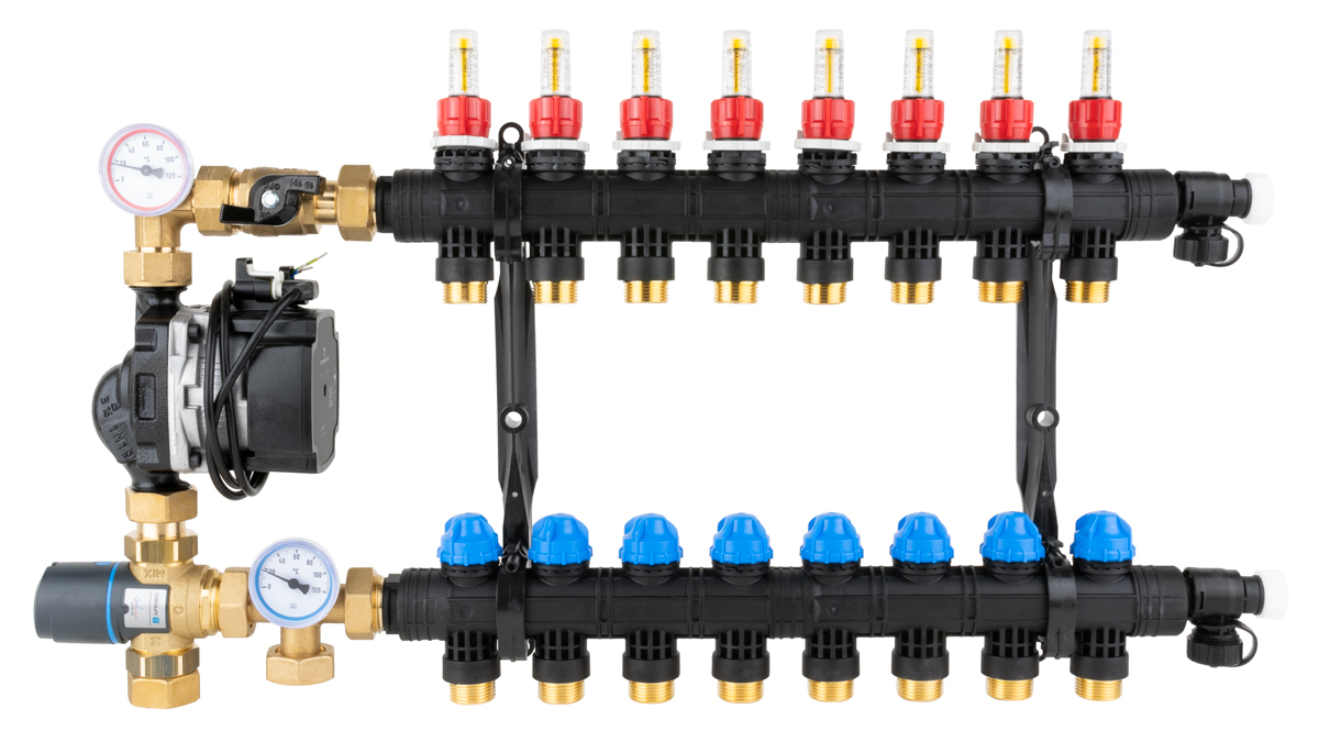 Stosowany w instalacjach grzewczych.Montowany między źródłem ciepła a rozdzielaczem ogrzewania płaszczyznowego w szafce rozdzielacza.