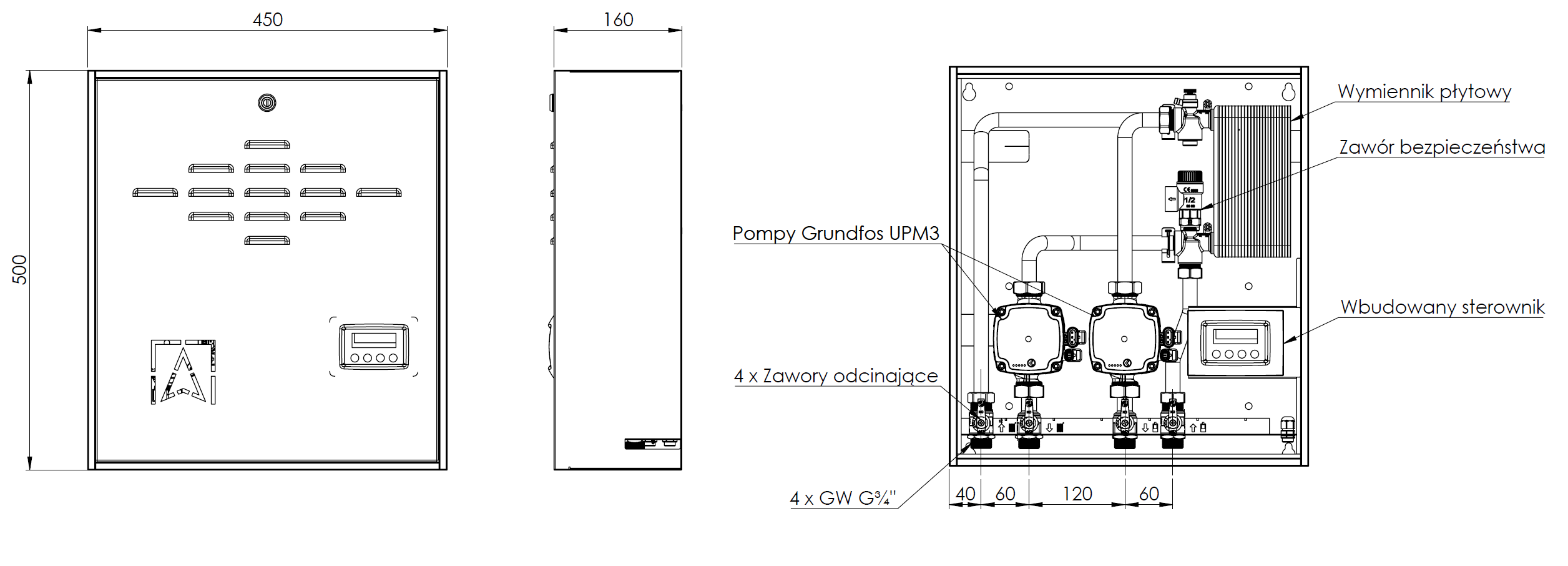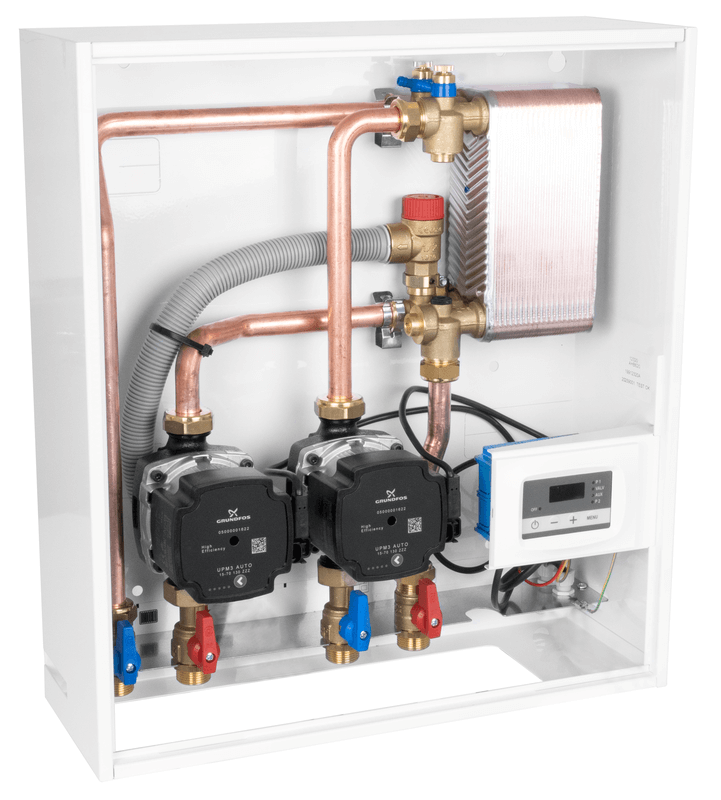 Stosowany do połączenia dwóch różnych źródeł ciepła poprzez oddzielanie ich obiegów za pomocą wymiennika płytowego.Montowany na lub w ścianie w pobliżu źródła ciepła.