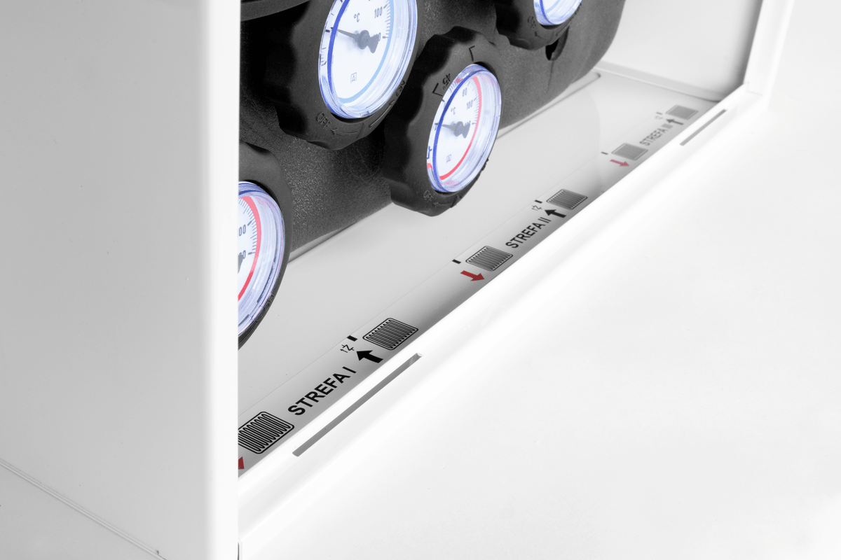 - Pozwala na uzyskanie różnych temperatur zasilania obiegów grzewczych.
