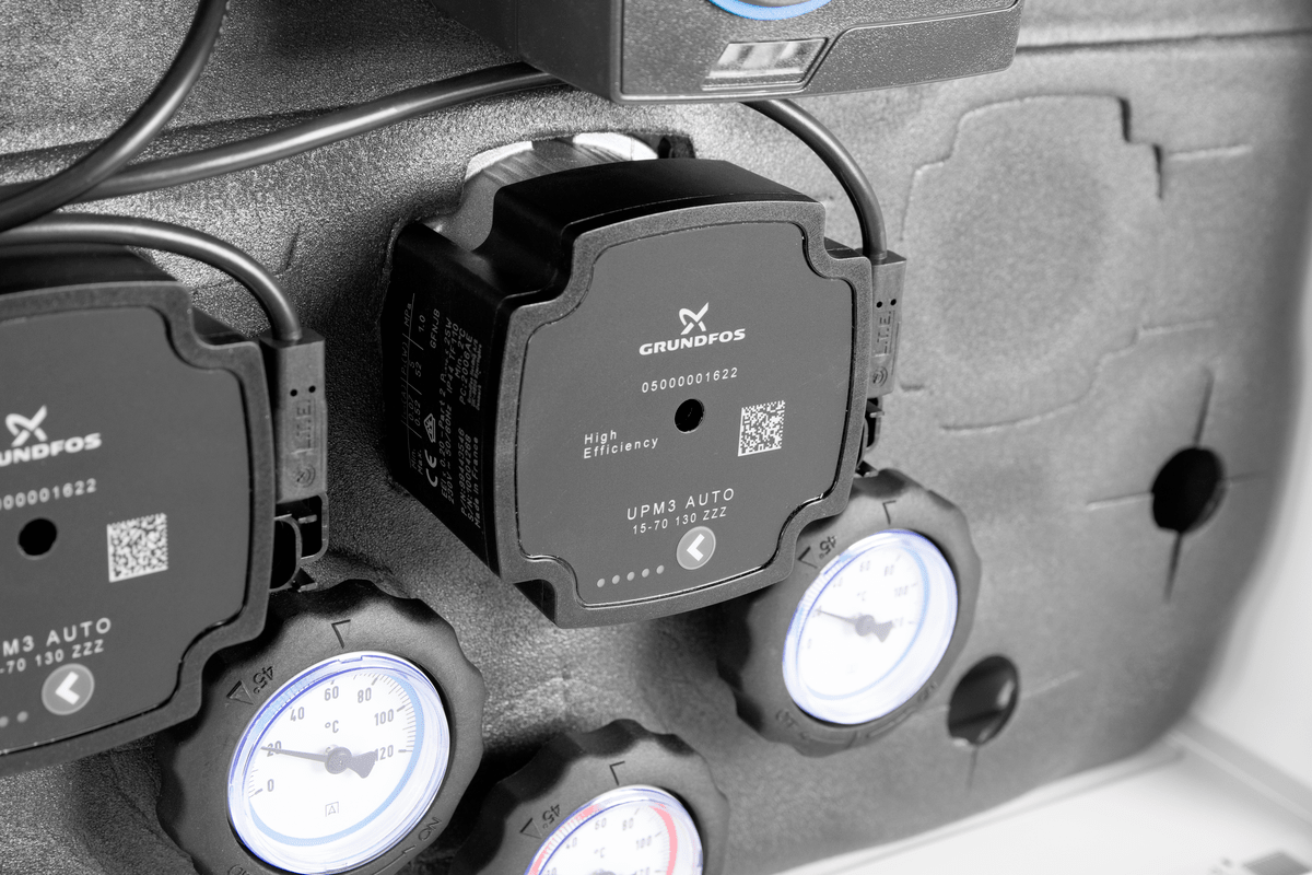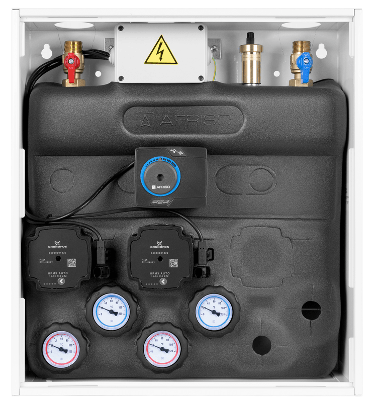 - Wyposażony w pompy Grundfos UPM3 i obrotowy zawór mieszający z siłownikiem ARM 141 ProClick.