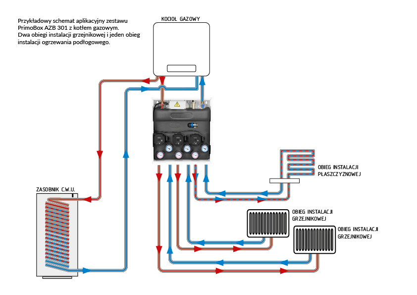 Opcjonalnie można połączyć go z zestawem separacyjnym **PrimoBox AHB** i stworzyć kolumnę grzewczą łączącą 2 źródła ciepła.