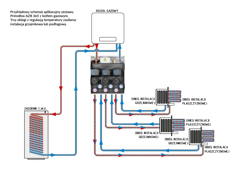 Opcjonalnie można połączyć go z zestawem separacyjnym **PrimoBox AHB** i stworzyć kolumnę grzewczą łączącą 2 źródła ciepła.